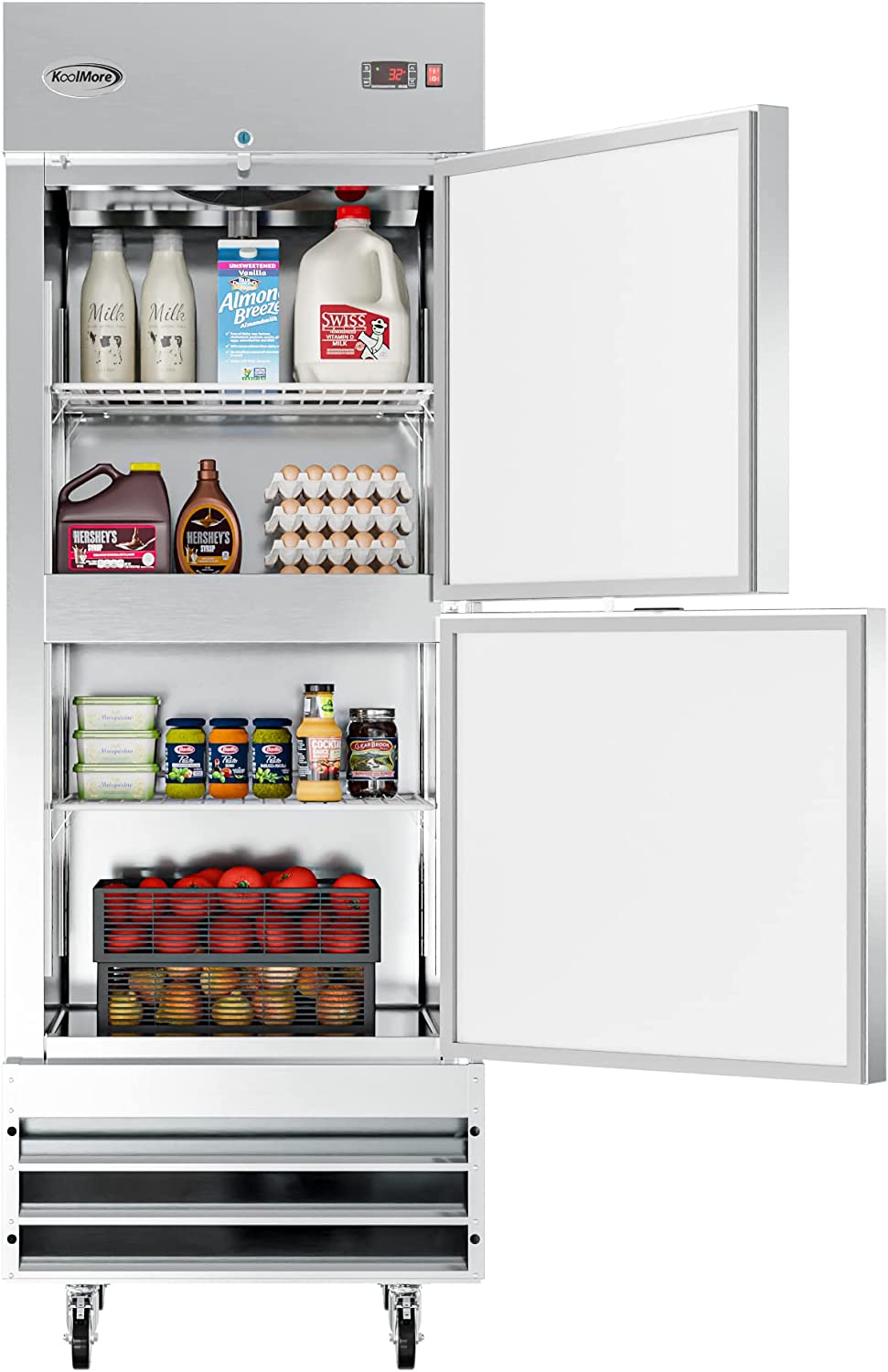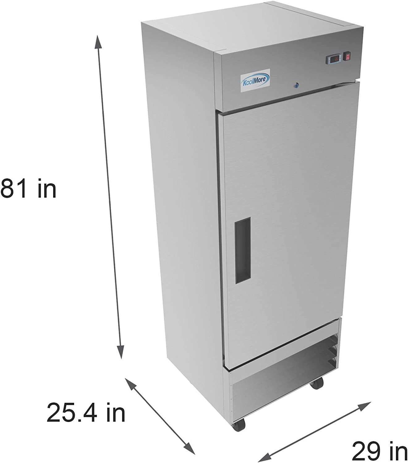 KoolMore 29" Stainless Steel Solid Door Commercial Reach-in Refrigerator Cooler - 19 cu. ft (RIR-1D-SS-19C)