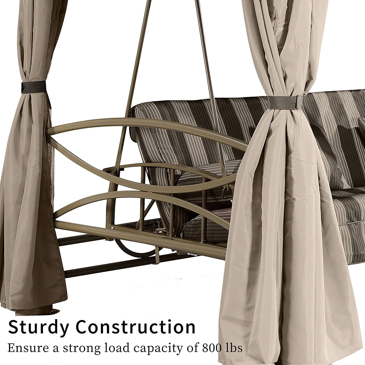 【Gazebo】【BS】3 Person Outdoor Patio Porch Swing Gazebo with Netting & Gazebo Curtains