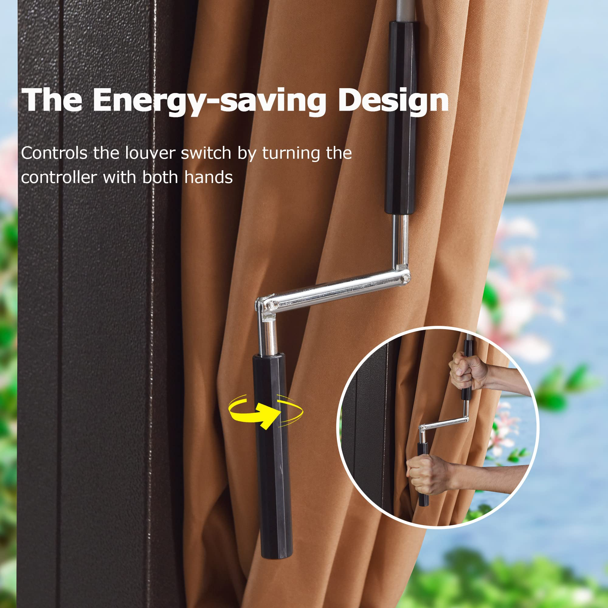 【Home&Garden】【BS】9.5x11 Steel Arched Pergola with 2-Tone Adjustable Shade, Tan & Brown