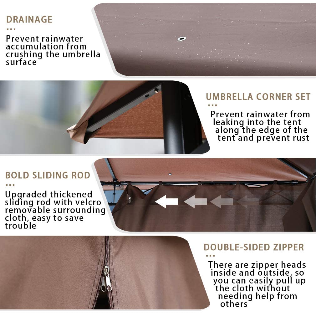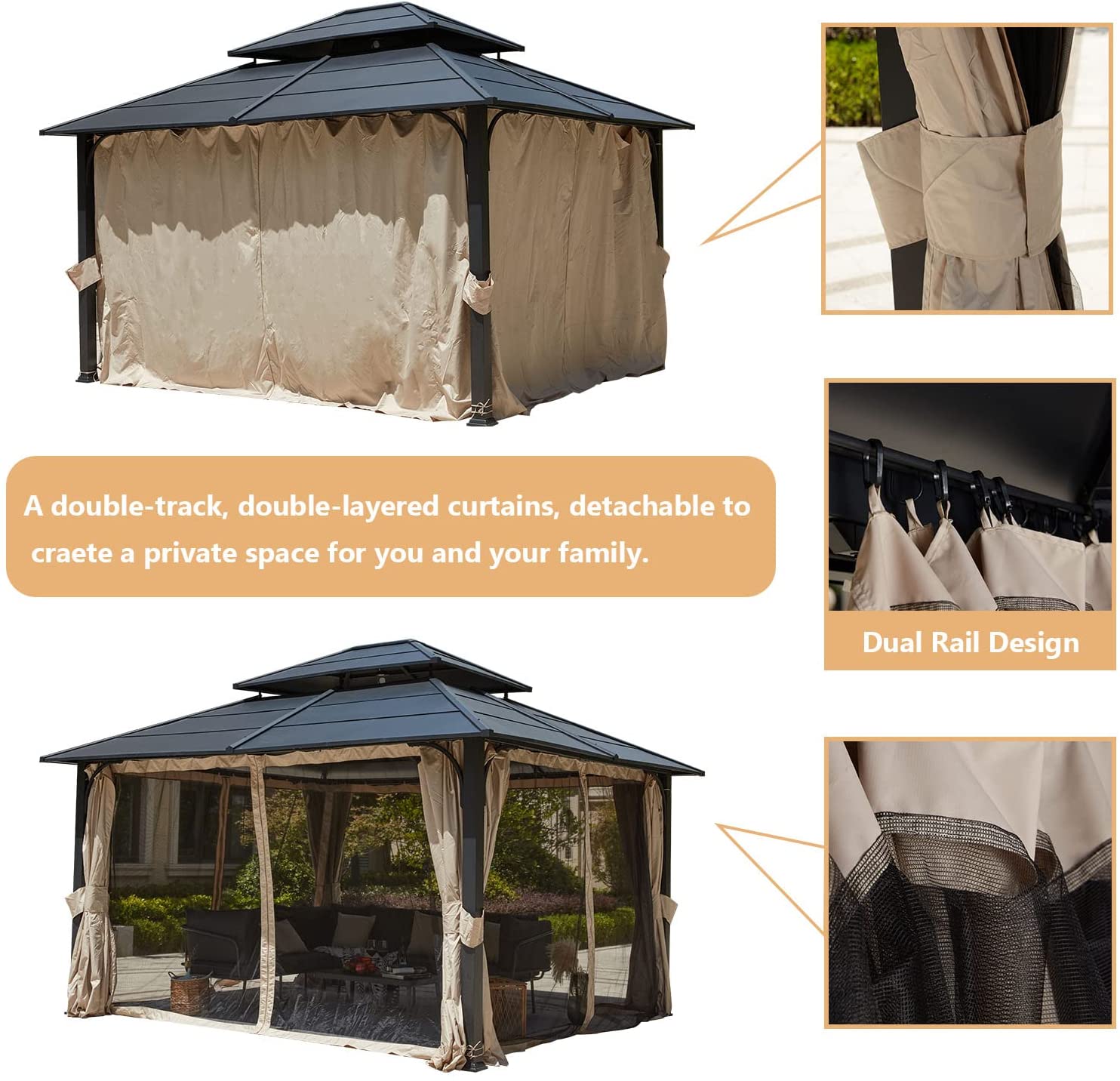 【Gazebo】【BS】10x10 ft Hardtop Gazebo, Outdoor Canopy Gazebo with Netting & Shaded Curtains for Patio