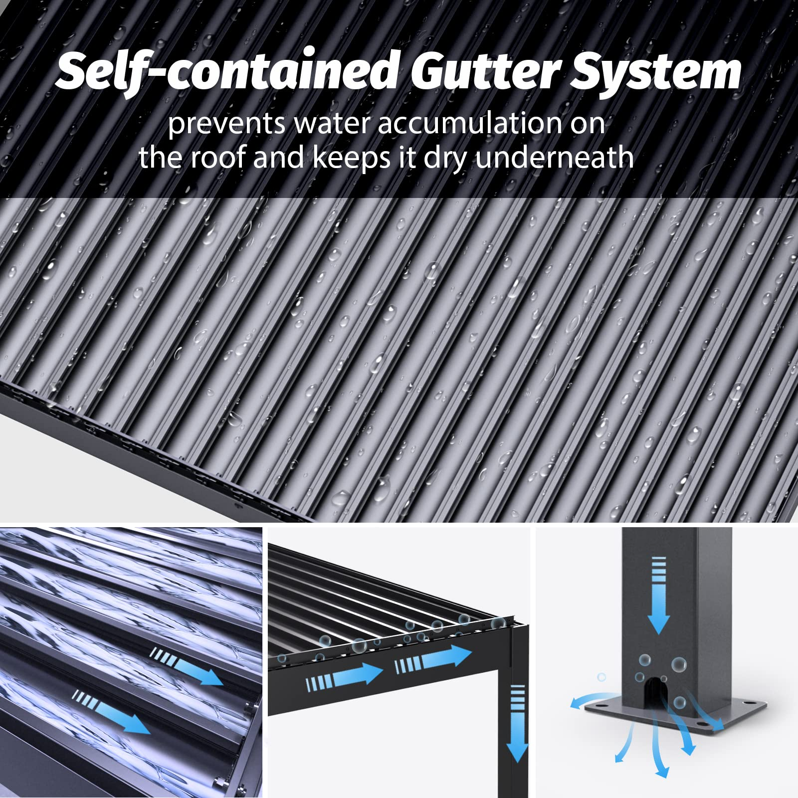 【Gazebo】10.5x12.5 ft. Outdoor Patio Black Steel Frame Hardtop Gazebo with 2-Tier Steel Roof & Mesh Netting