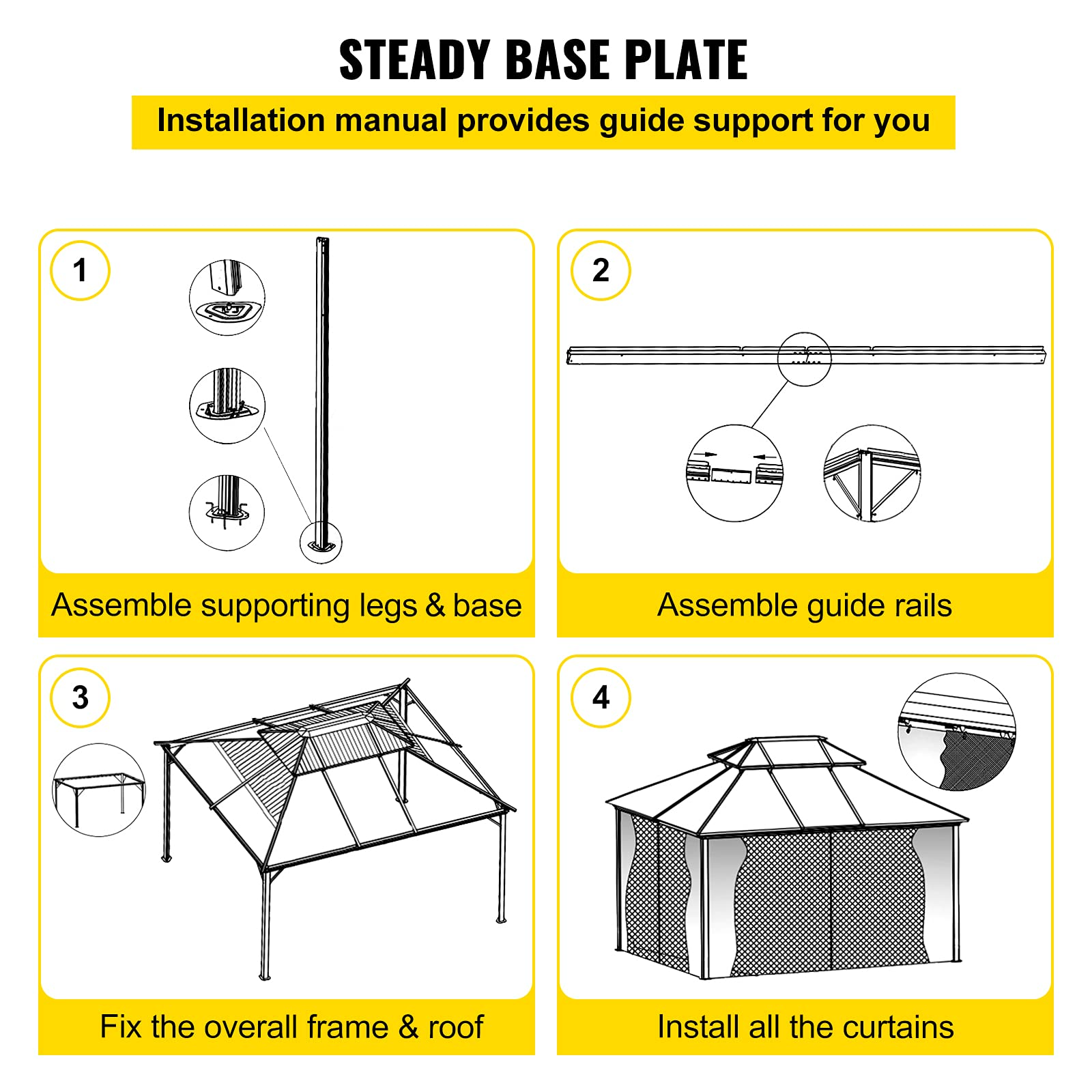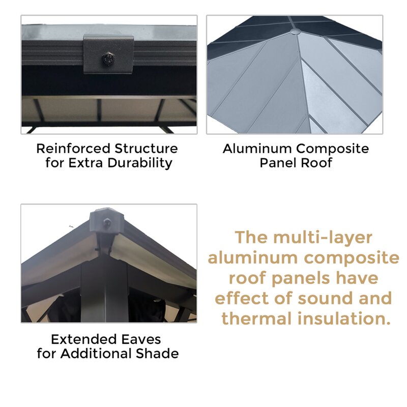 【Gazebo】Hardtop Gazebo Galvanized Steel Outdoor Gazebo Canopy Double Roof Pergolas Aluminum Frame