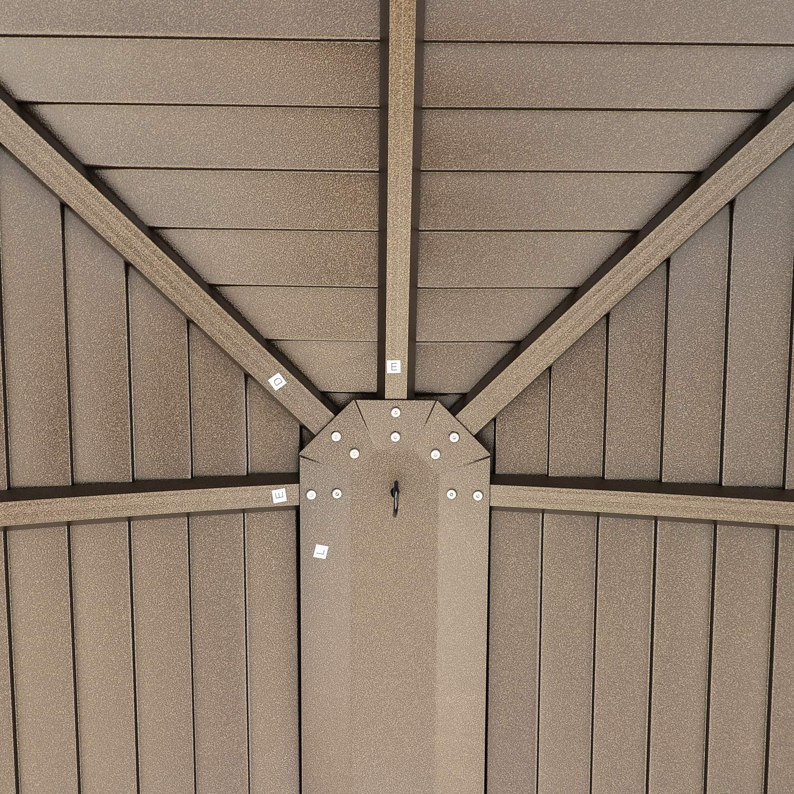 【Gazebo】10.5x12.5 ft. Outdoor Patio Black Steel Frame Hardtop Gazebo with 2-Tier Steel Roof & Mesh Netting