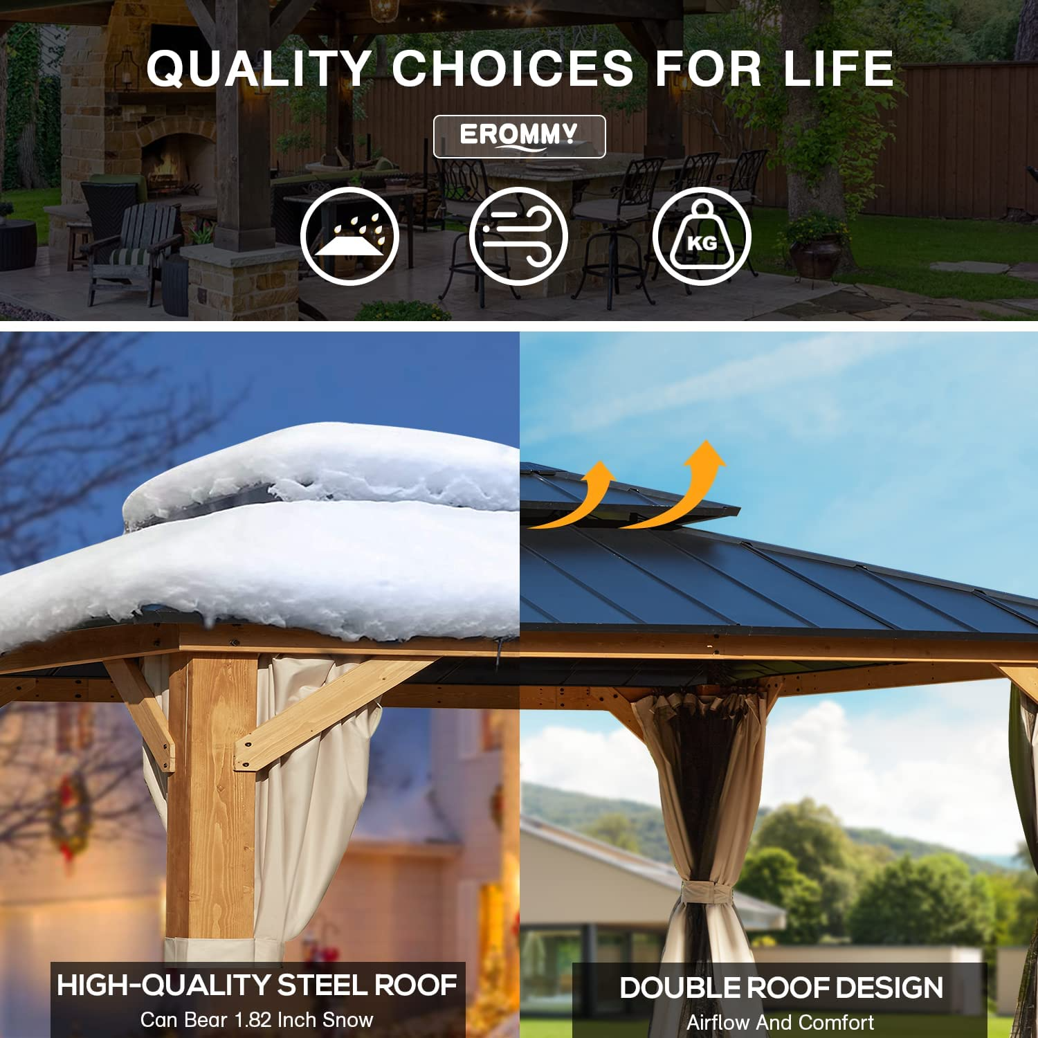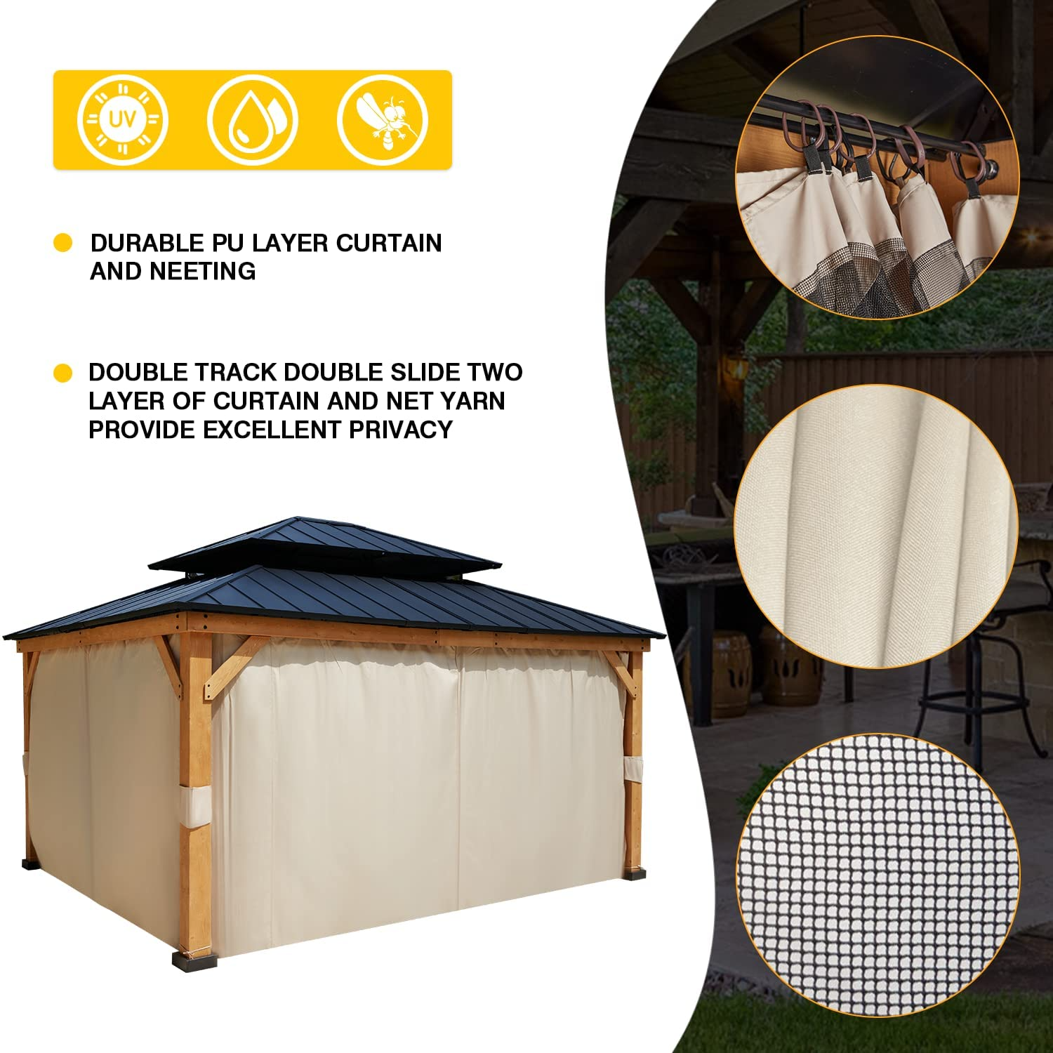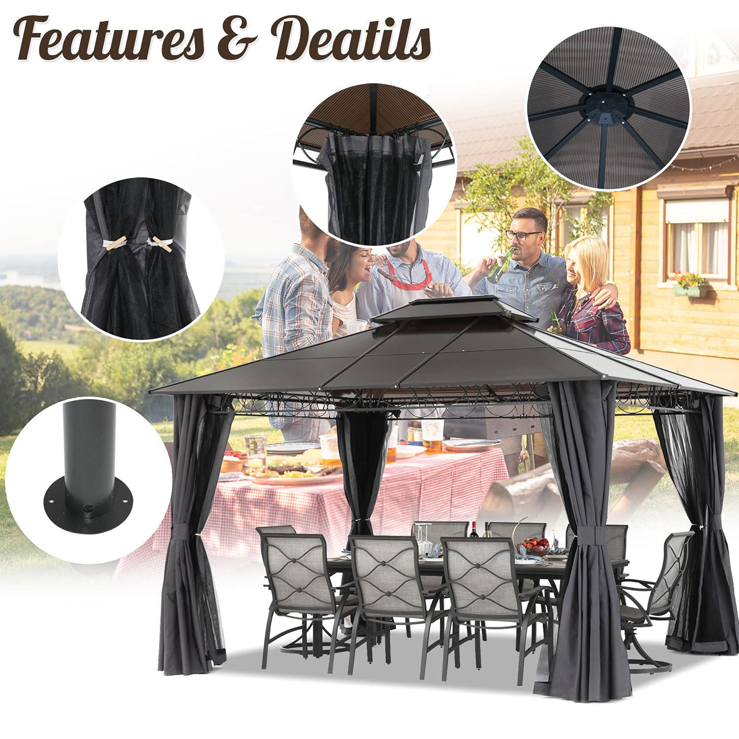 【Gazebo】12' x 16' Hardtop Gazebo, Permanent Outdoor Aluminum Patio Gazebo with Composite Double Roof