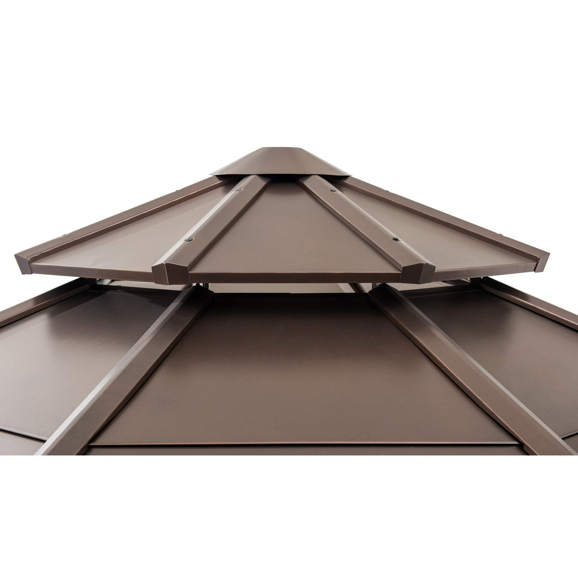 【Home&Garden】Outdoor Sunroom 12x14 ft. Steel Screenhouse with 2-Tier Hardtop Hot Tub Gazebo, Brown