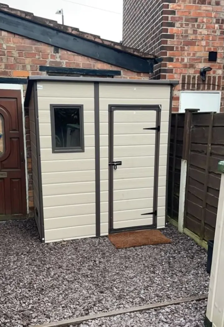 【Storage Shed】Keter Manor Pent Outdoor Garden Storage Shed, BeigeBrown, 6 x 4 ft