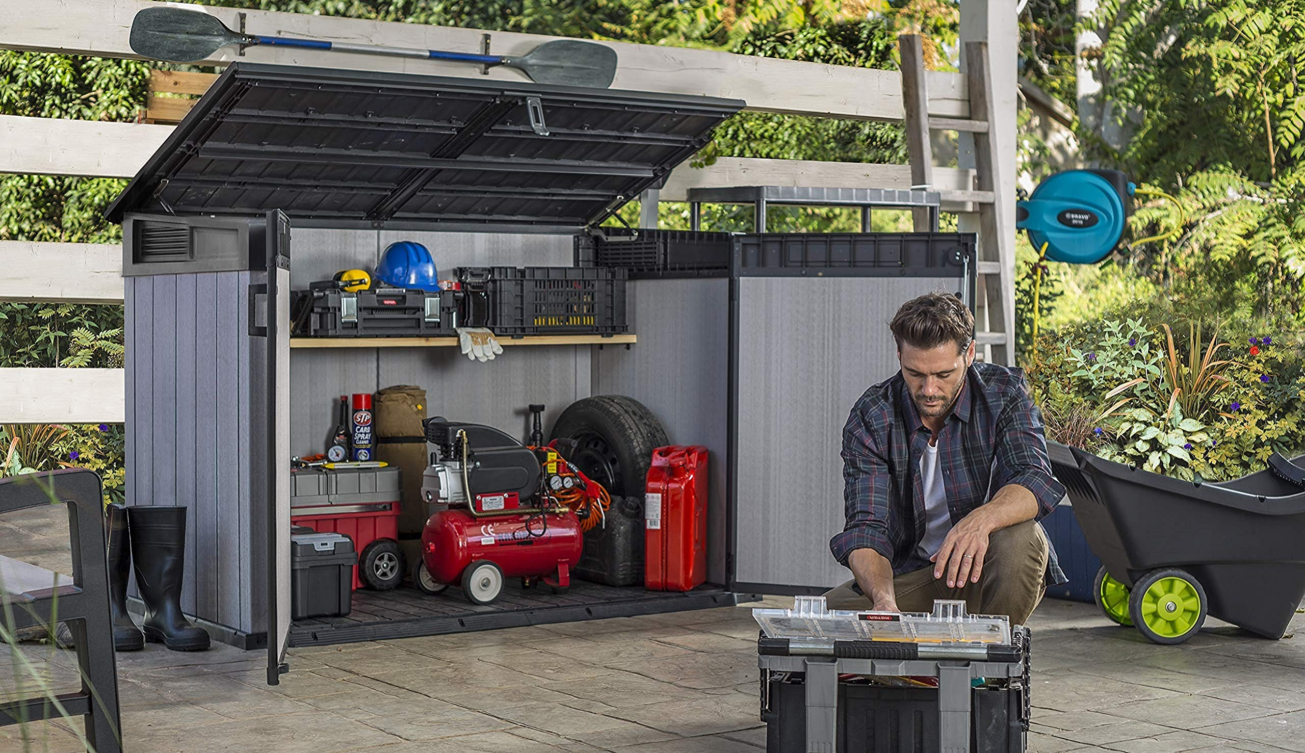 【Storage Shed】9x7 Foot Large Outdoor Shed with Floor with Modern Design for Patio Furniture, Tools