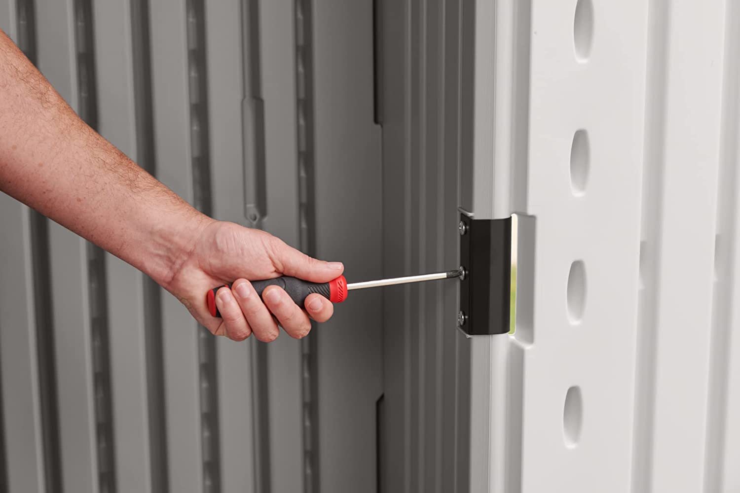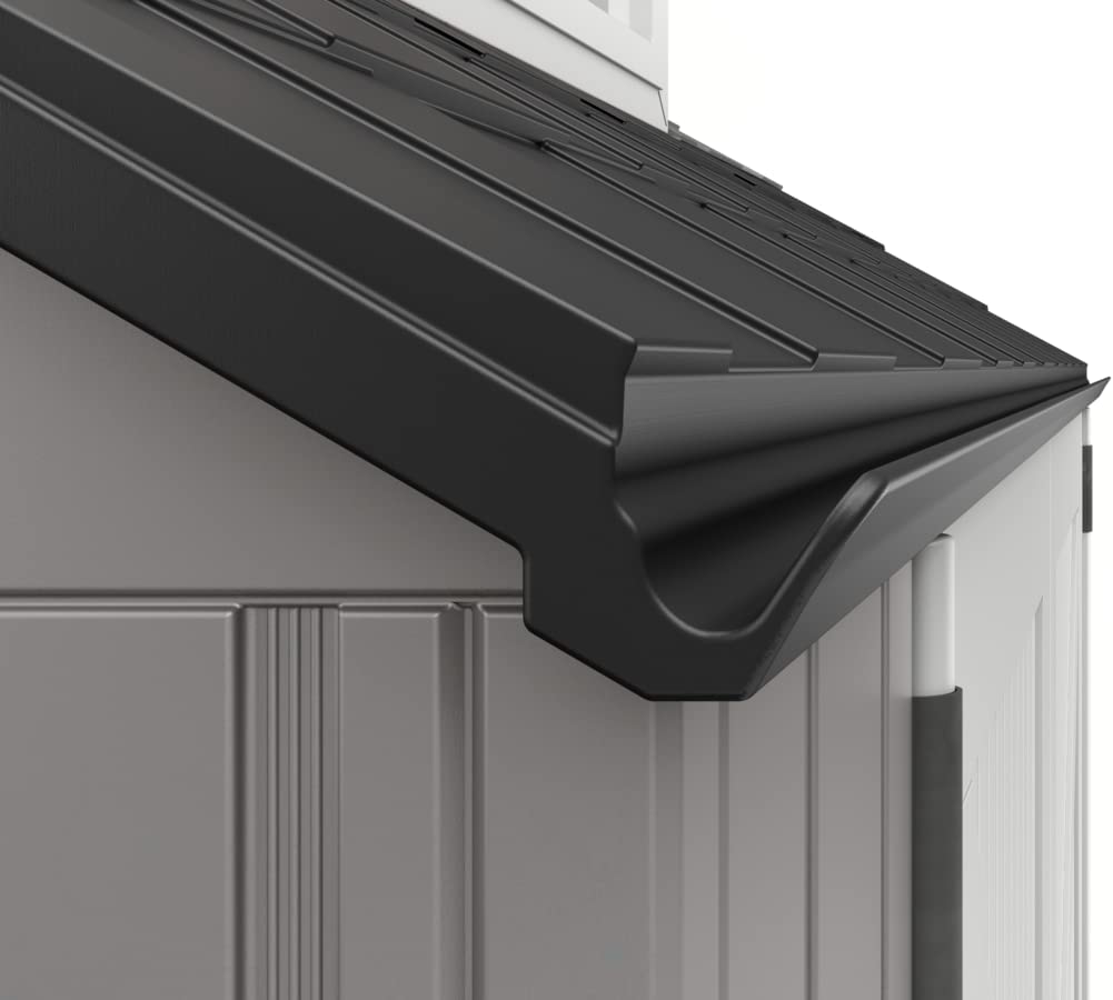 Rubbermaid Resin Weather Resistant Outdoor Storage Shed, 7 x 7 ft., Simple Gray/Onyx, for Garden/Backyard/Home/Pool