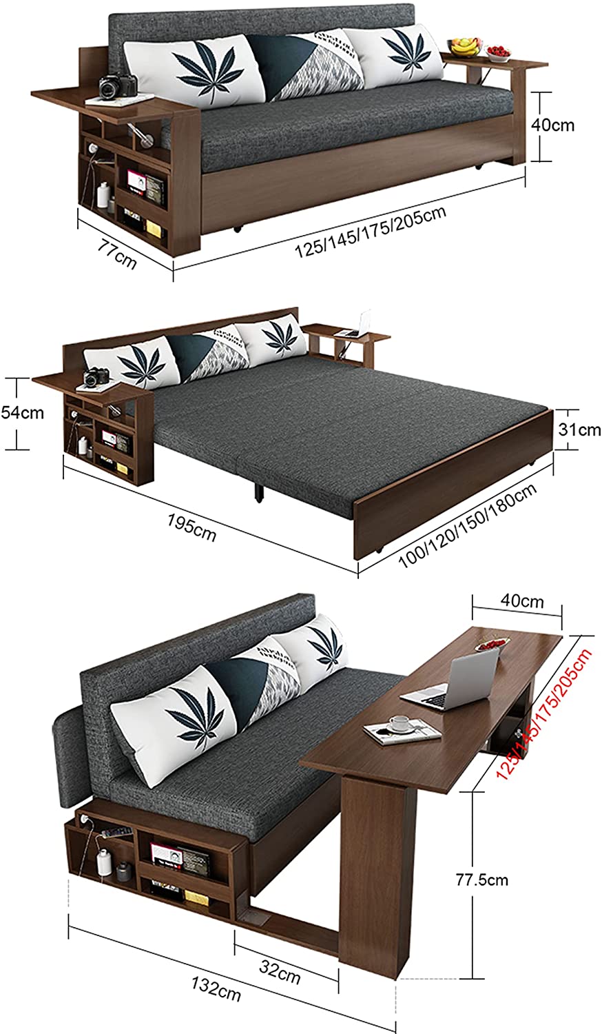 【Furniture】Solid Wood Sofa Bed, Multifunctional, Foldable, Storage Sofa Bed Dual-Use