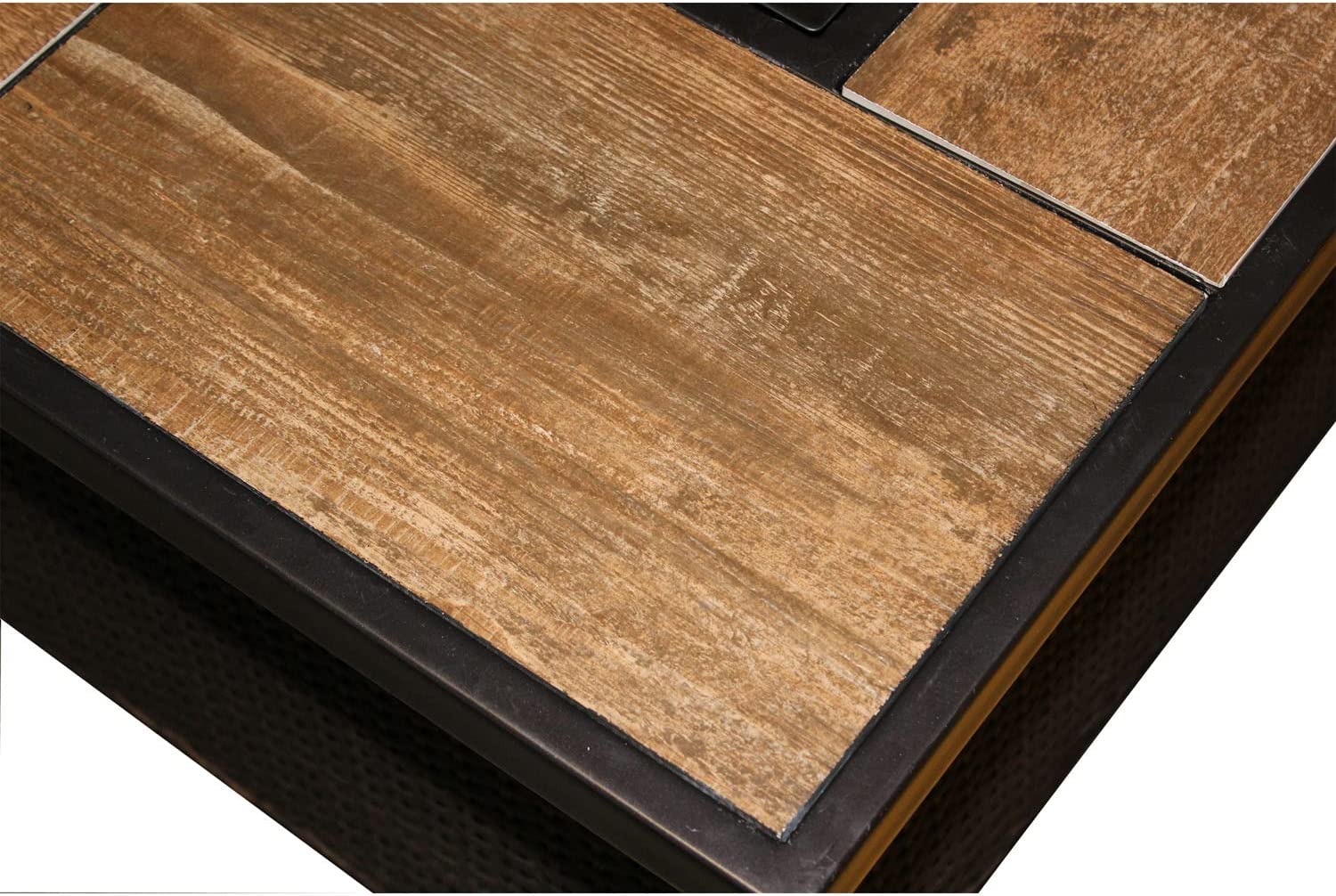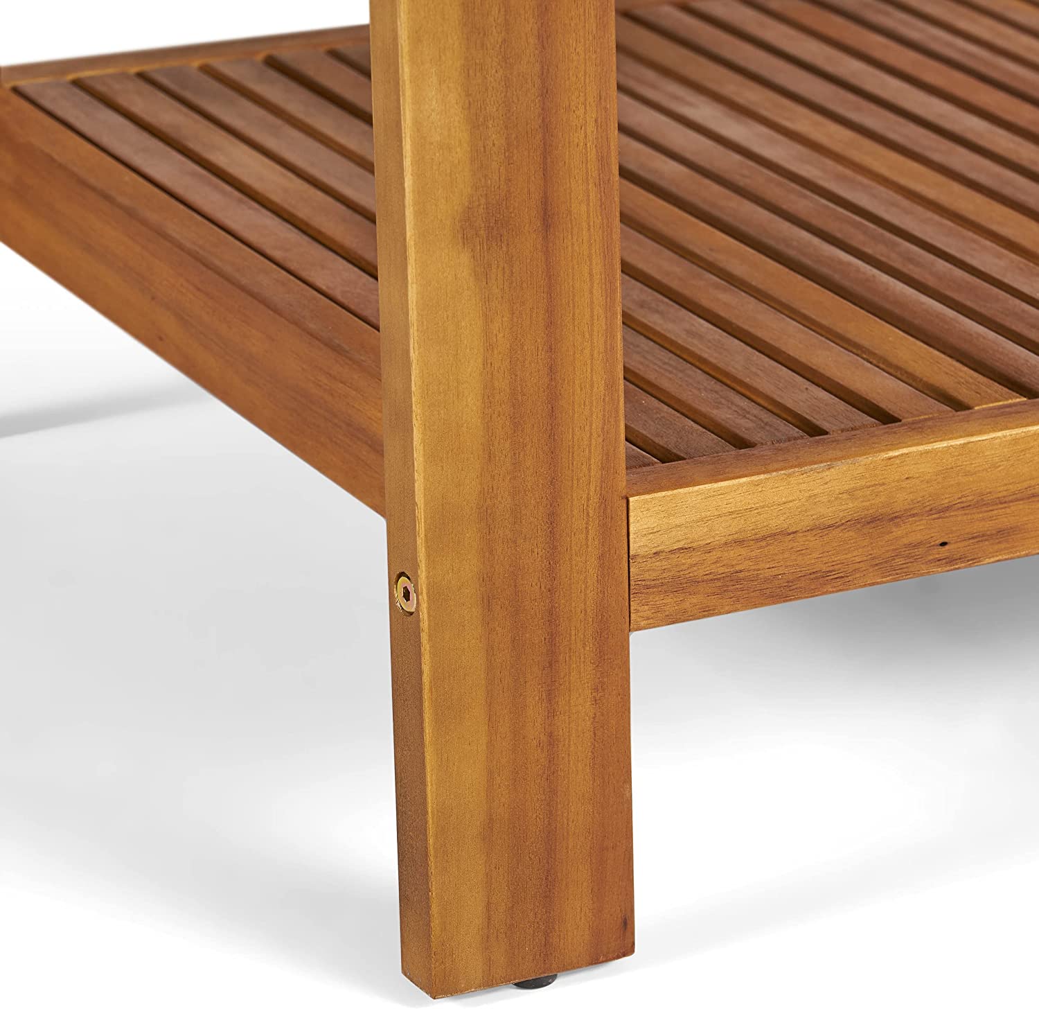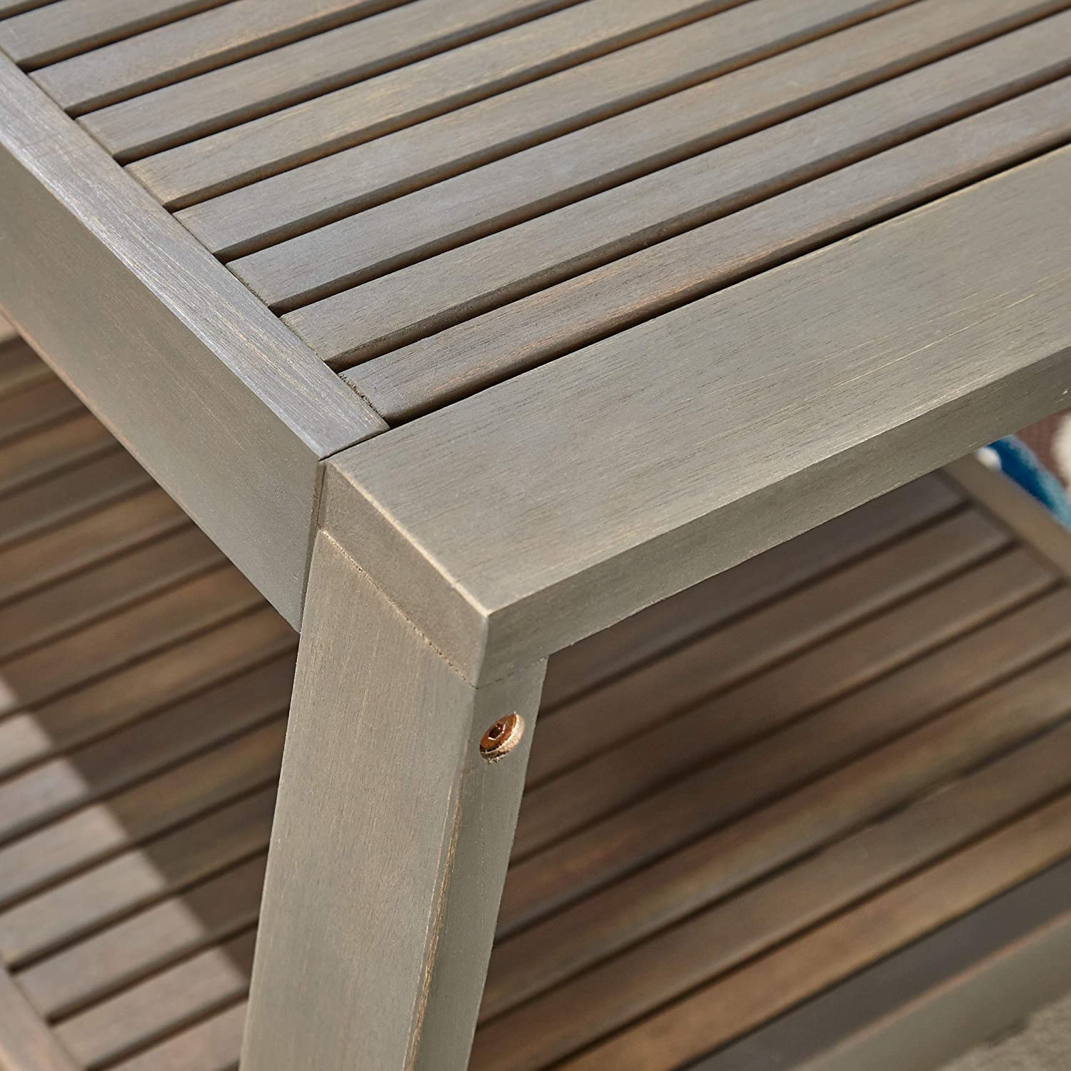Great Deal Furniture Sally 7-Seater Sectional Sofa Set for Patio with Loveseat, Club Chairs, Ottoman, and Coffee Tables, Acacia Wood, Teak Finish with Blue Outdoor Cushions
