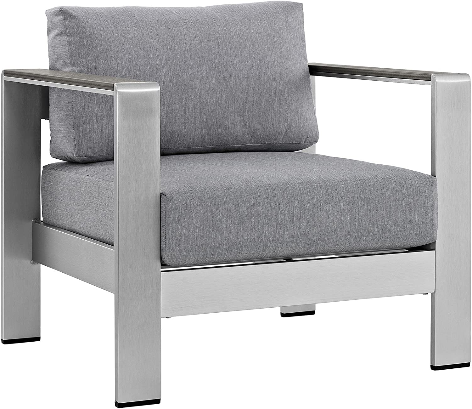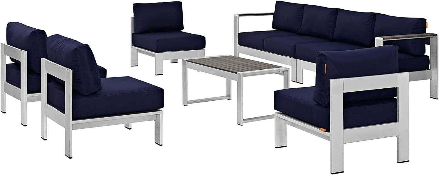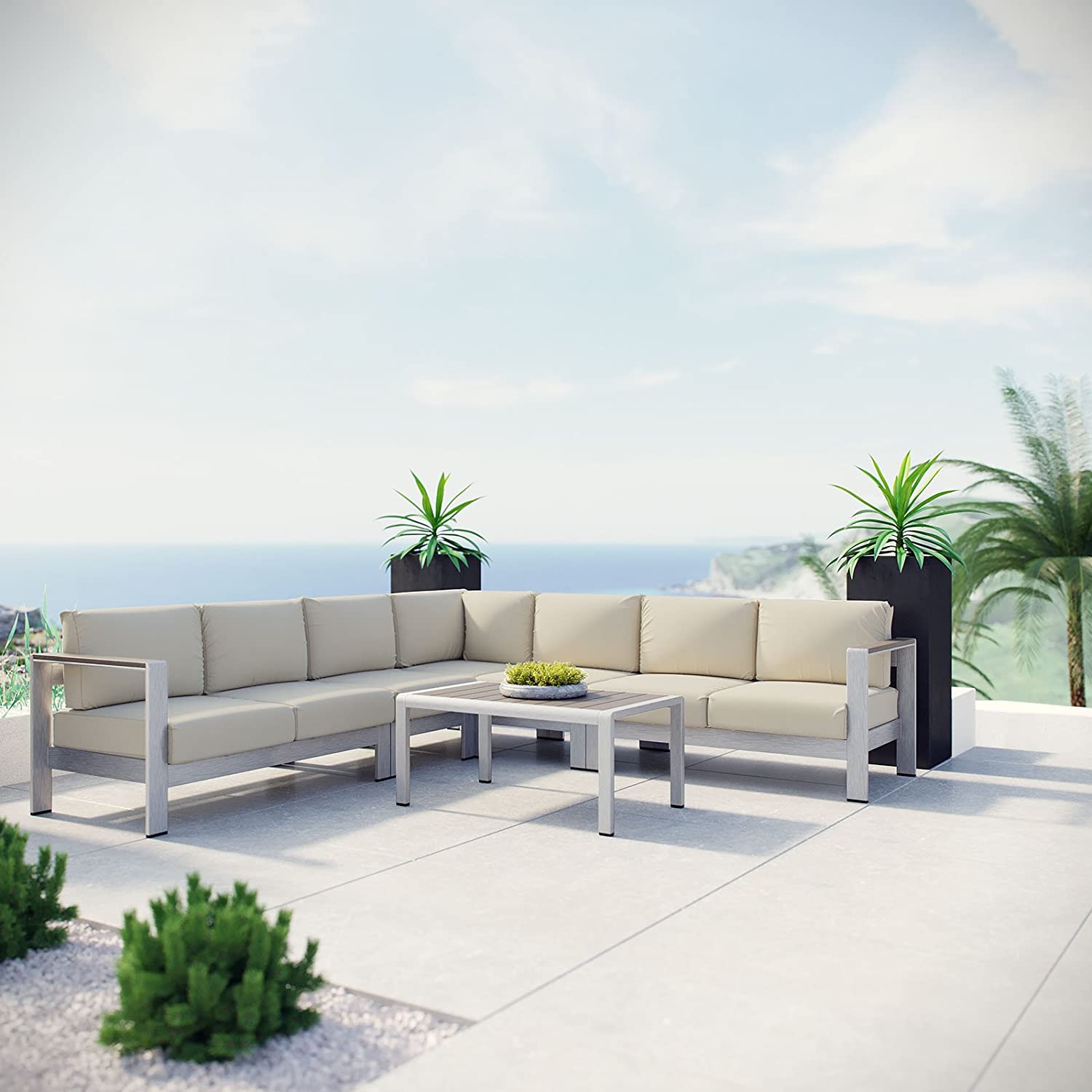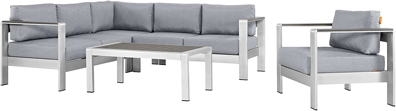Modway Shore 6-Piece Aluminum Outdoor Patio Sectional Sofa Set in Silver Gray