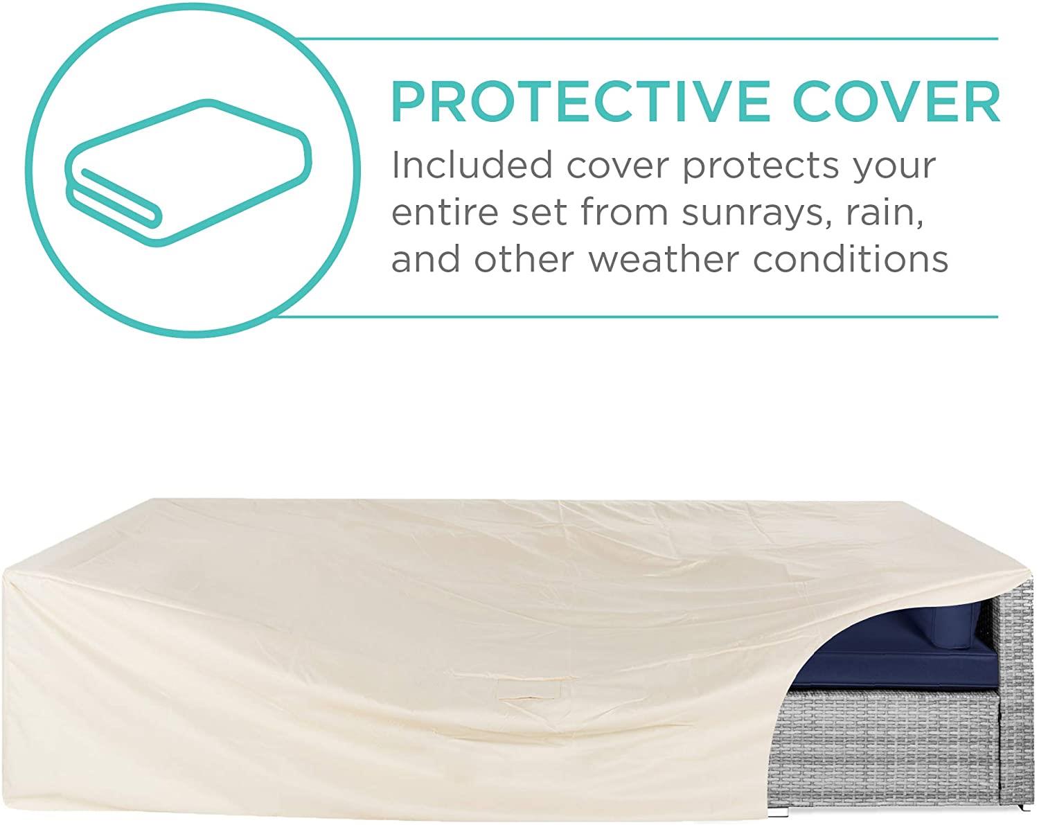 Best Choice Products 7-Piece Modular Outdoor Sectional Wicker Patio Furniture Conversation Sofa Set w/ 6 Chairs, 2 Pillows, Seat Clips, Coffee Table, Cover Included - Gray/Navy