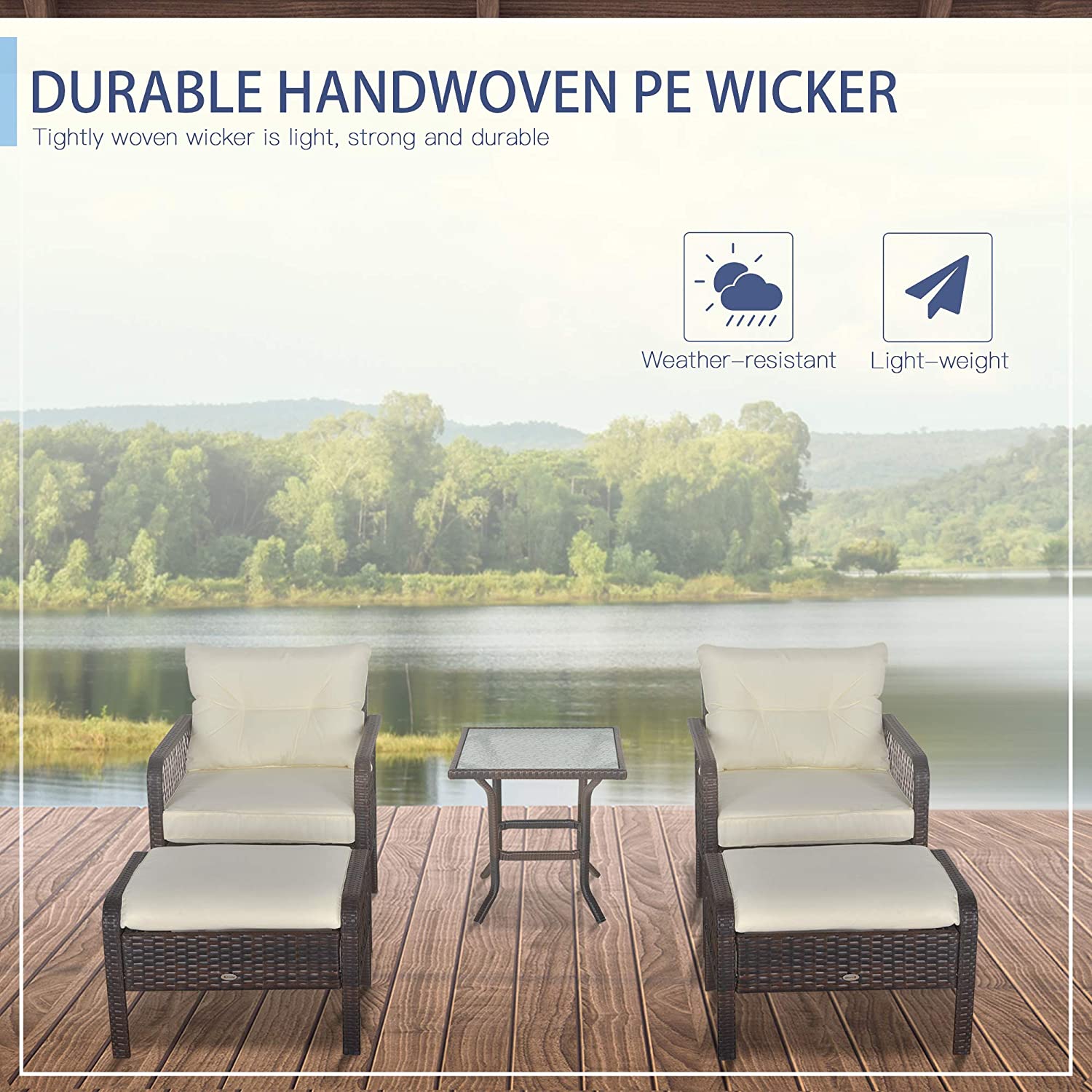 Outsunny 5-Piece Wicker Patio Armchair Set with Ottoman, Outdoor PE Rattan Furniture Set with Comfortable Zippered Cushions & Weather-Fighting Build, Grey