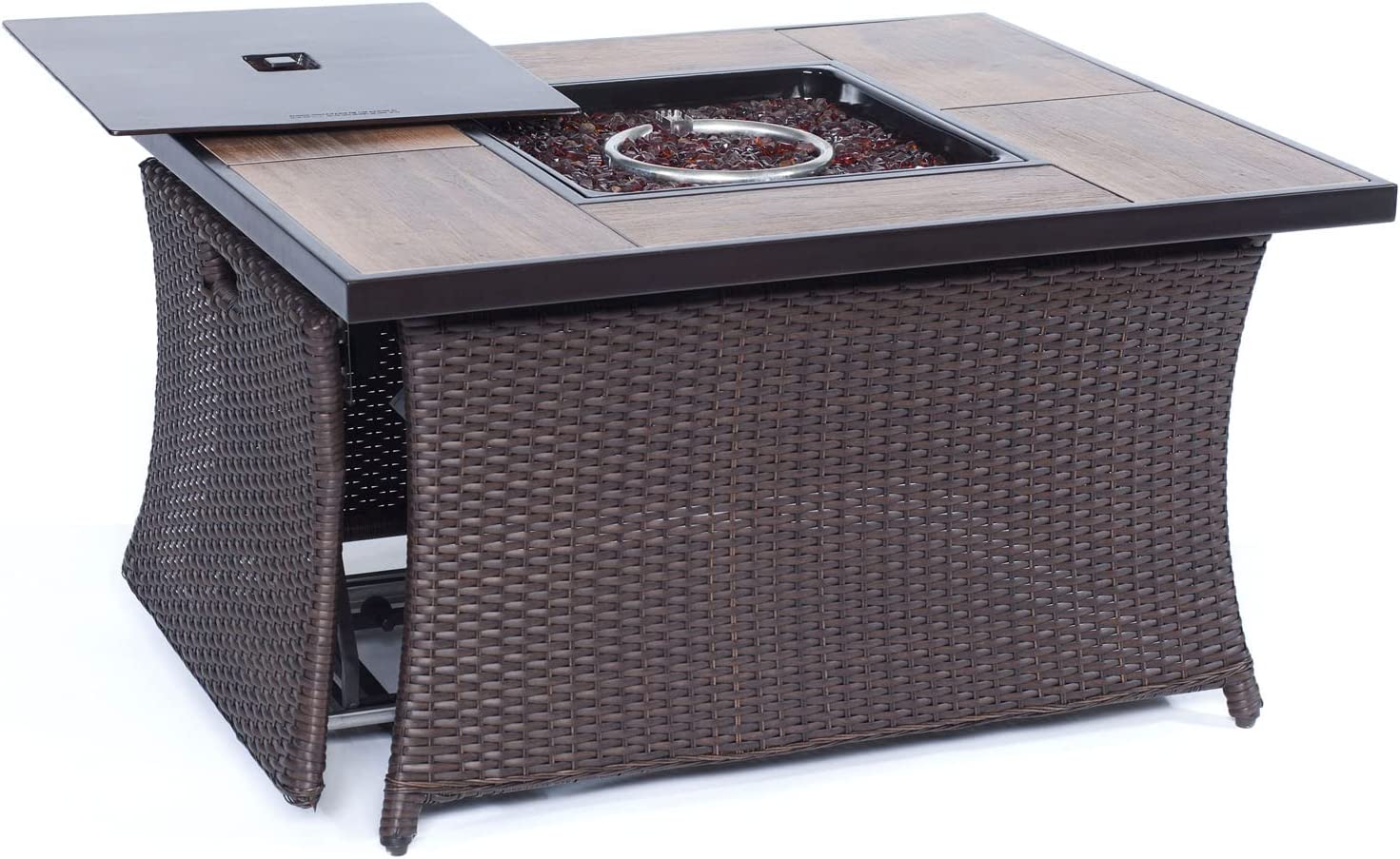 GODAFA 8 Seating Outdoor Patio Furniture Sectional Sofa Set, All-Weather Half-Moon with Tempered Glass Table for Backyard Porch Poolside (Brown Wicker, Gray Cushion), Beige