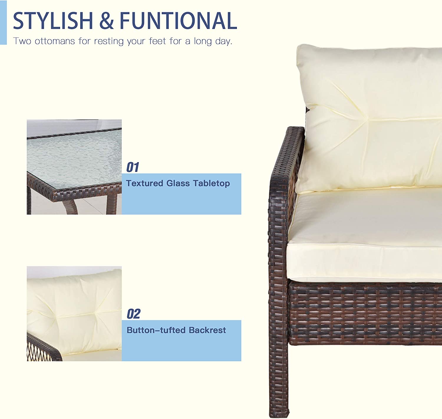 Evedy Funiture 9-Piece Patio Rattan Conversation, Outdoor PE Sectional Sofa Sets(Black Wicker, Beige Cushion)