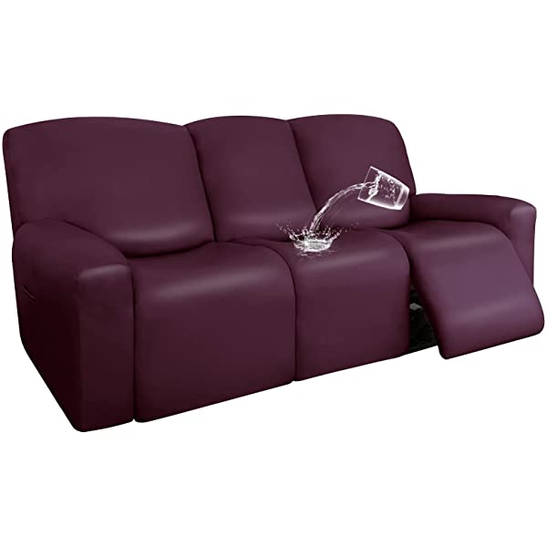 Easy-Going PU Leather Recliner Sofa Slipcovers, Waterproof Stretch Sofa Covers, 8 Pieces Stretch Furniture Protector, Elastic Strap Shield Pets Kids Children Cats Dogs Beige