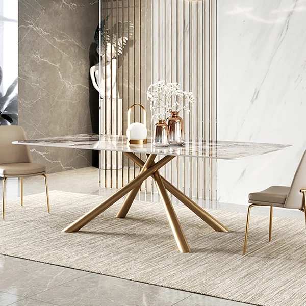63" Modern Sintered Stone Top Rectangle Dining Table in Pandora & Gold with Trestle