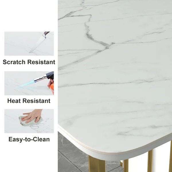 Mullia Modern 71" Dining Table with Faux Marble Top White Rectangle Dining Table