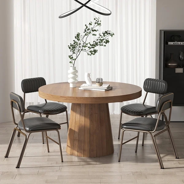 39"-55" Extendable Dining Table 6-Seater Walnut Oval&Round Table Pedestal