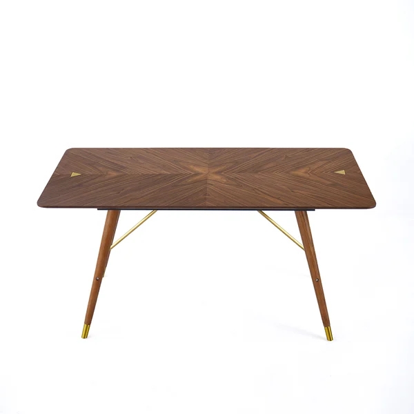 Japandi 55" Solid Wood Dining Table Walnut Rectangle Tabletop for 6 Person