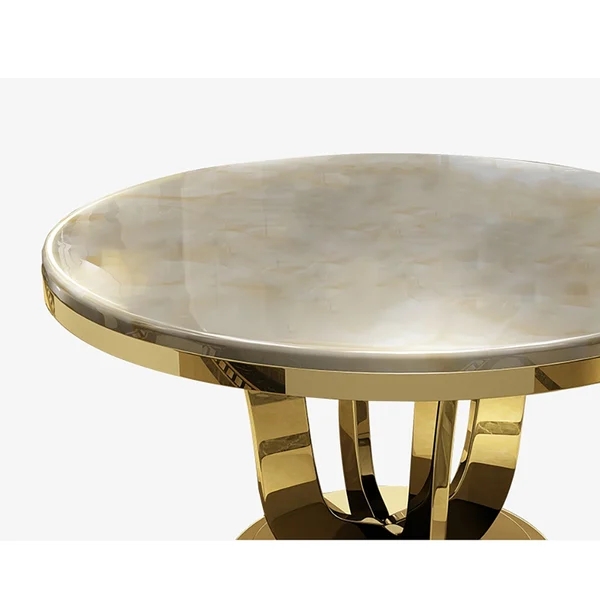 47" Modern Round Faux Marble Top Dining Table with Stainless Steel Base in Beige