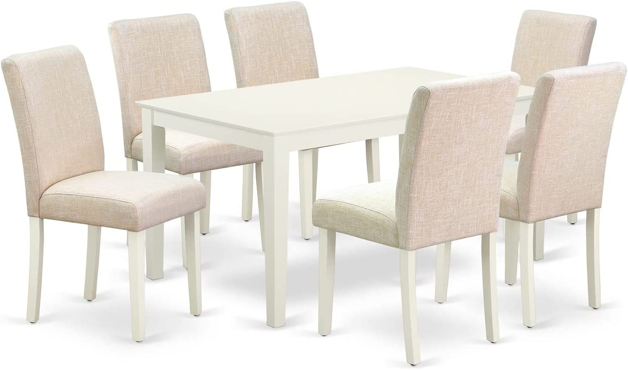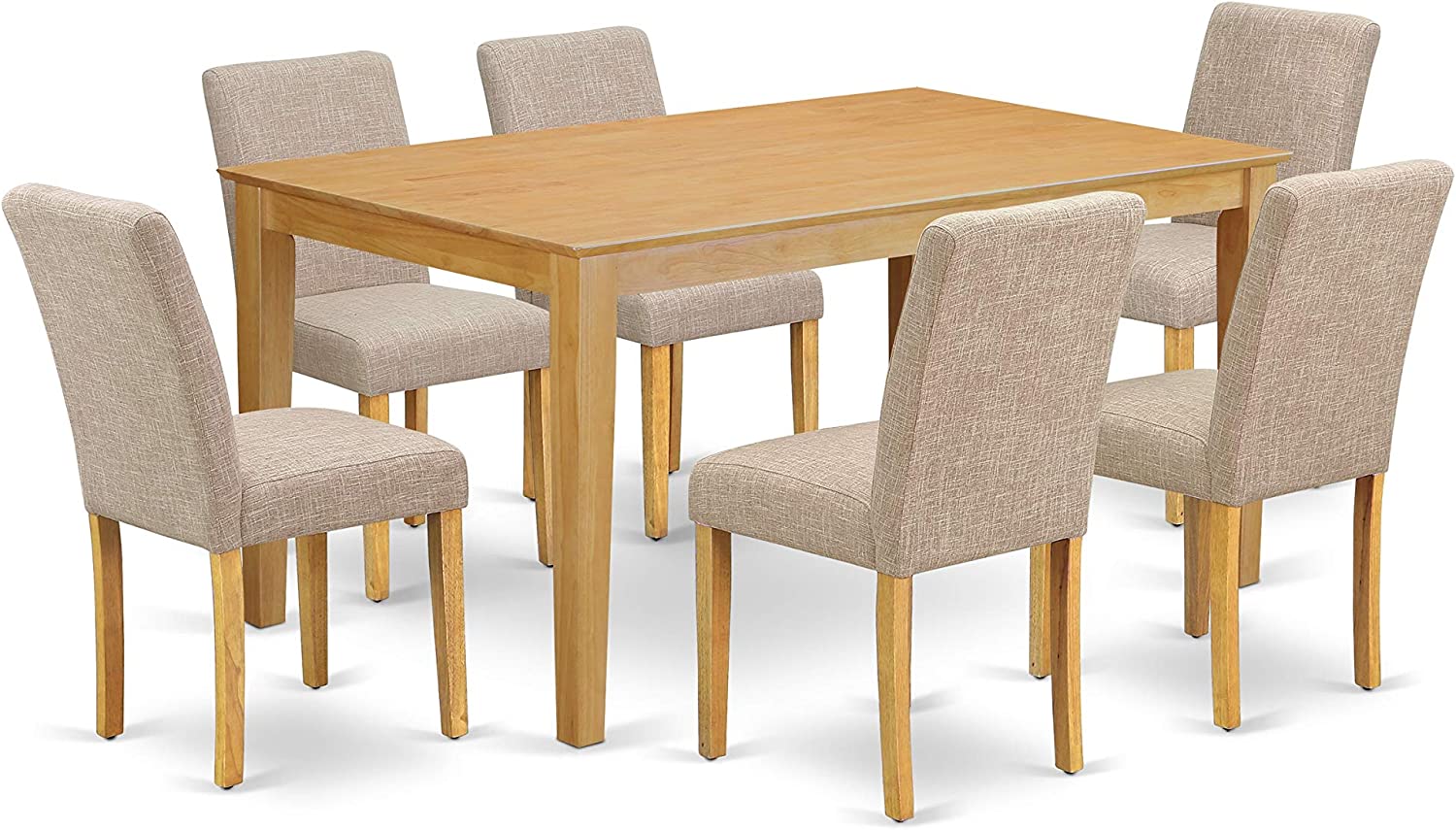 East West Furniture CAAB7-OAK-55 7Pc Rectangle 60" Dining Table And 6 Parson Chair With Oak Leg And Pu Leather Color Oasis, 7 Pieces