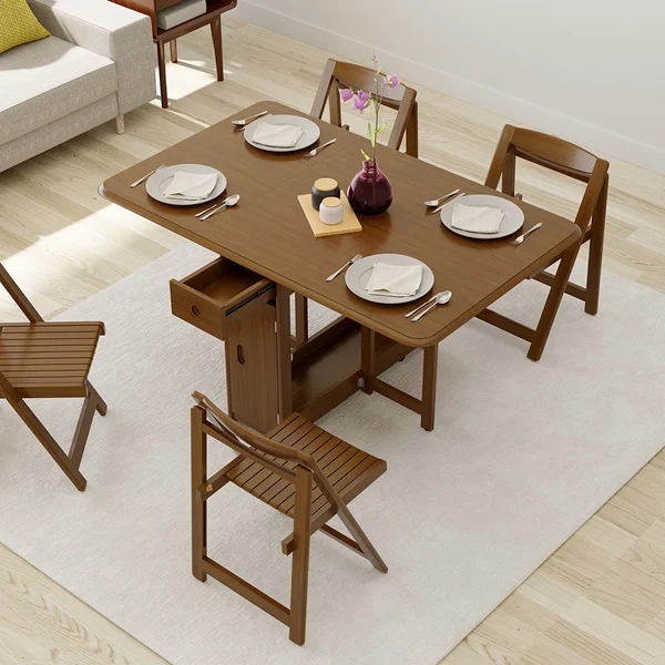 57" Modern Solid Wood Folding 5 Piece Dining Table Set Drop Leaf with 4 Chairs