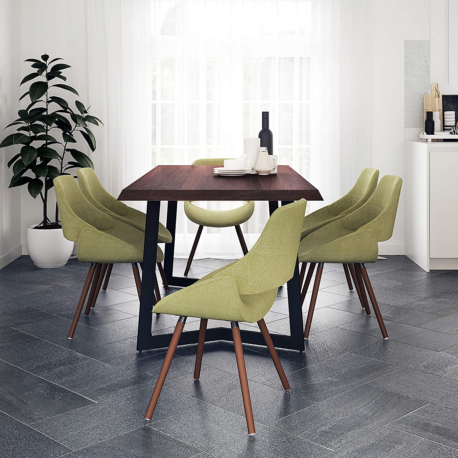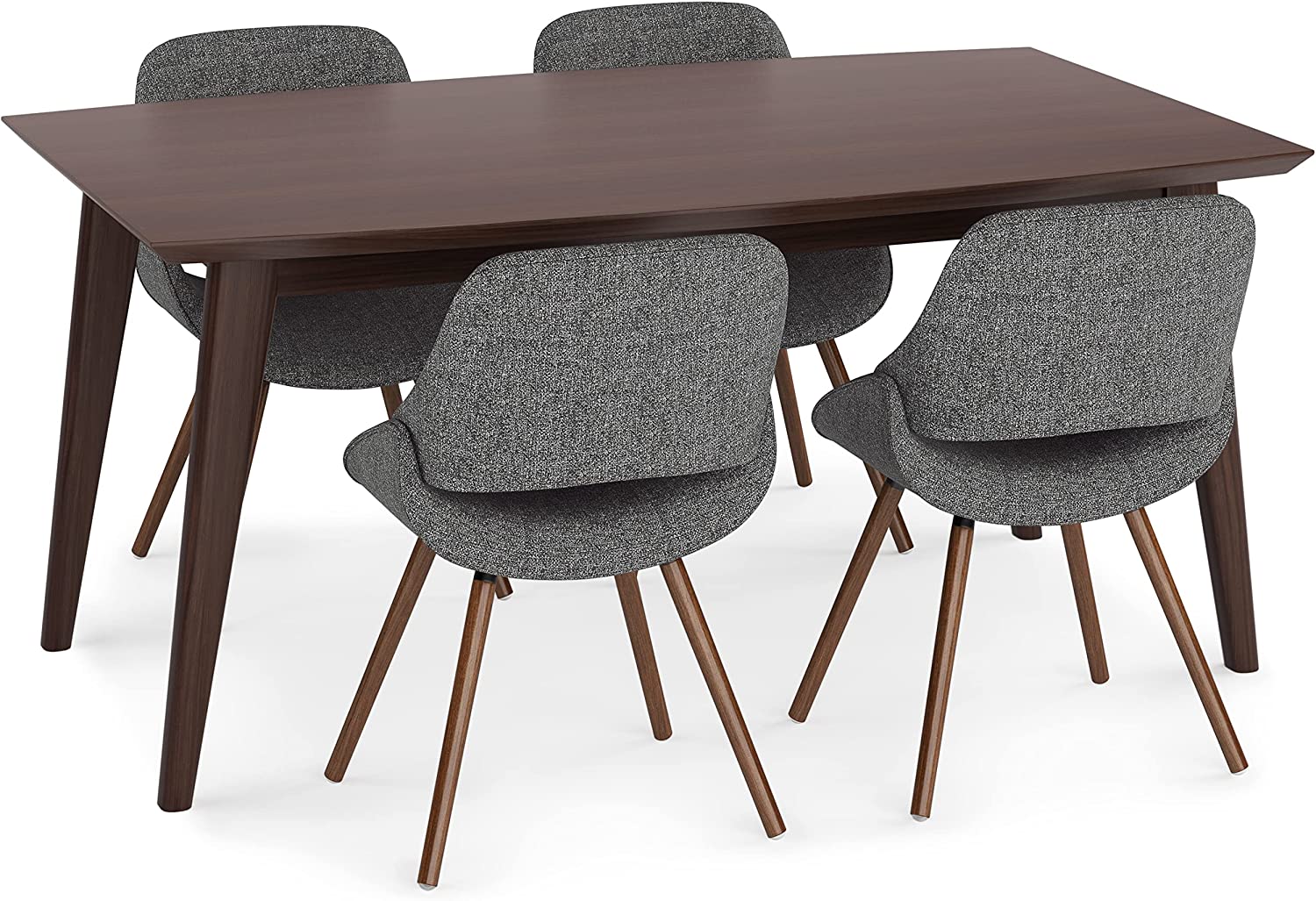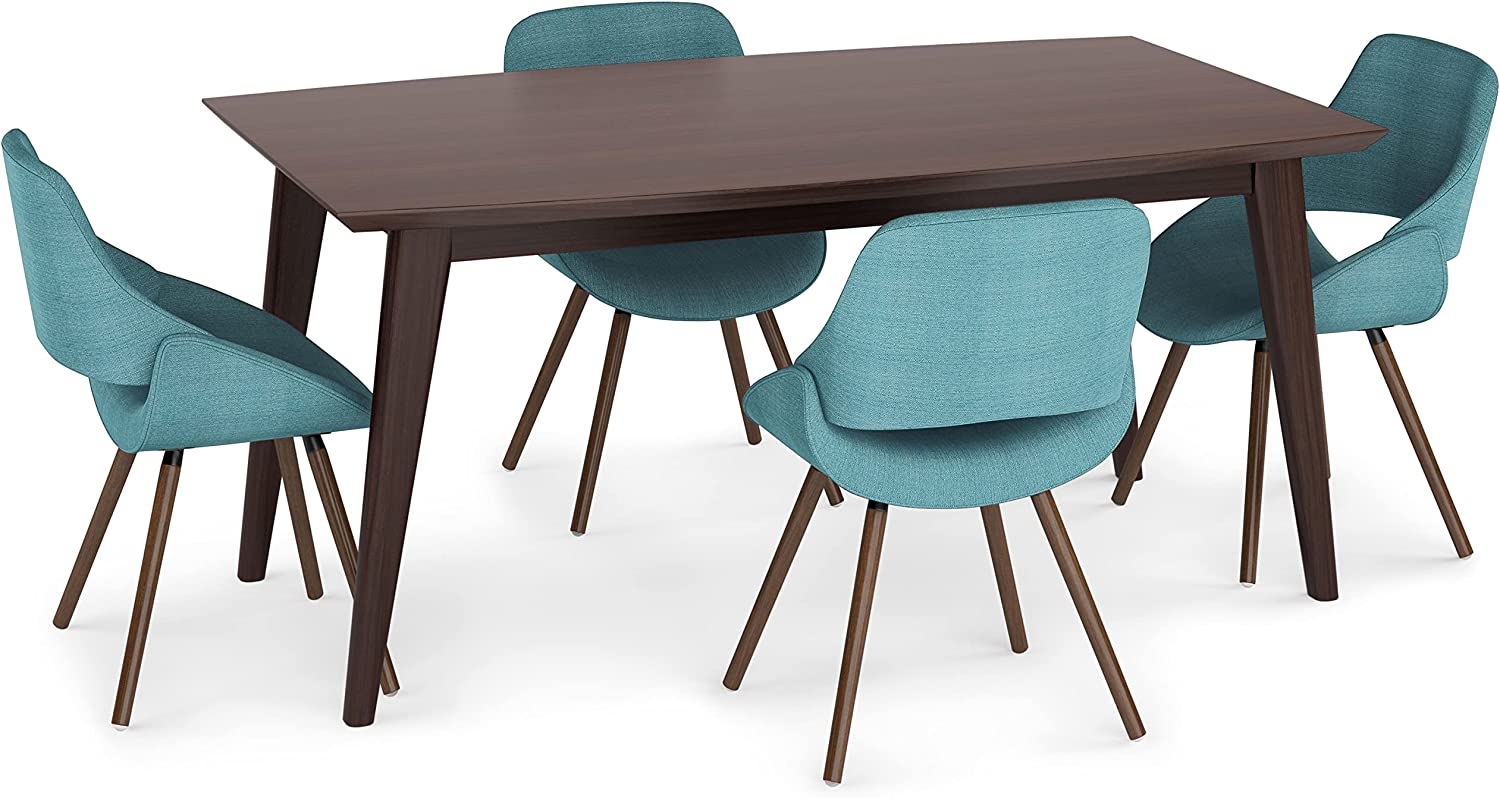 Christopher Knight Home Megann Mid-Century Wood Dining Set with Fabric Chairs, 5-Pcs Set, Natural Walnut / Mint