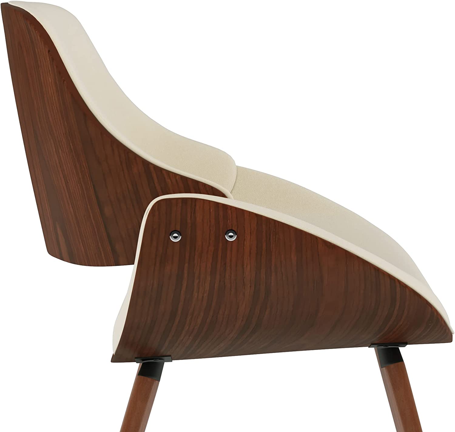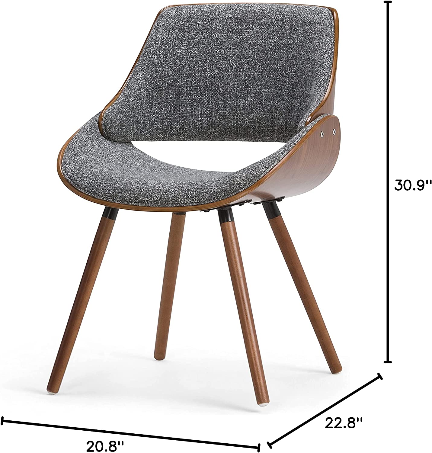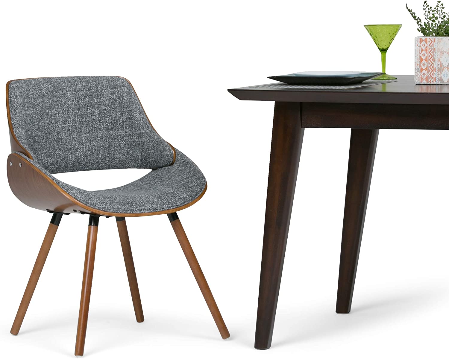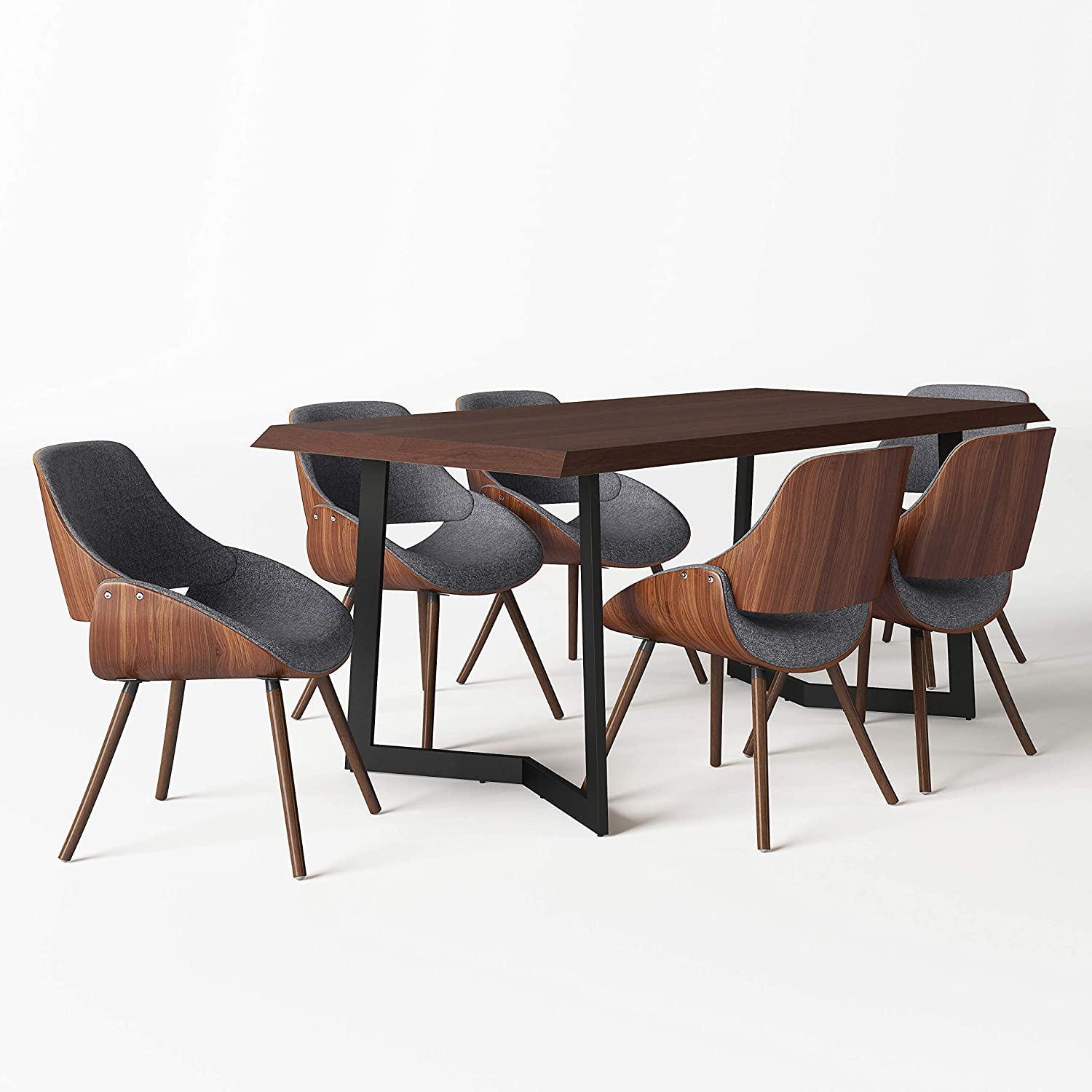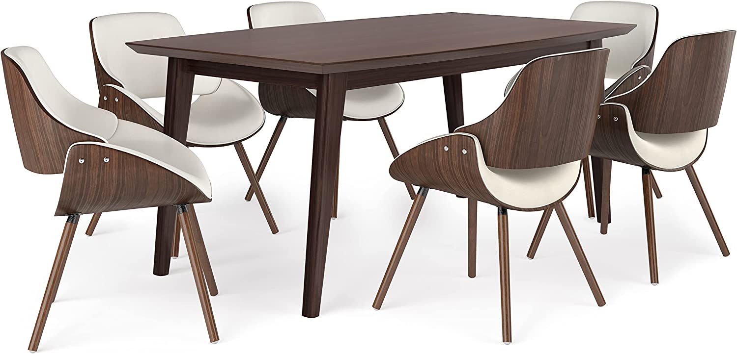SIMPLIHOME Malden Mid Century Modern V 7 Pc Dining Set with 6 Upholstered Bentwood Dining Chairs in Natural Woven Polyester Fabric and 66 inch Wide Table SOLID MANGO WOOD Full Assembly Required