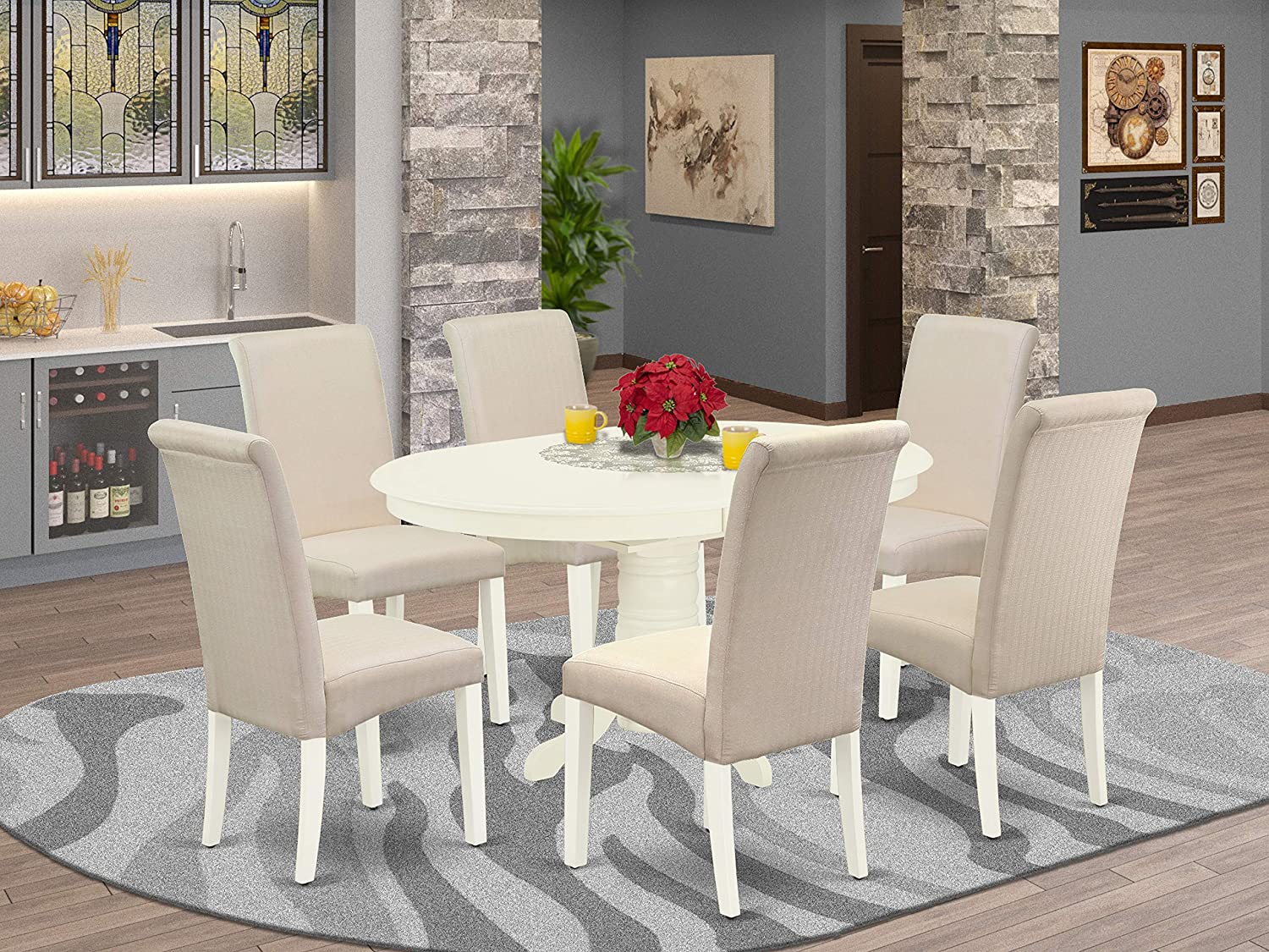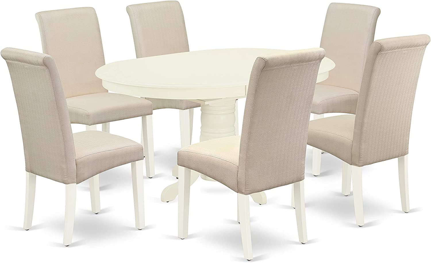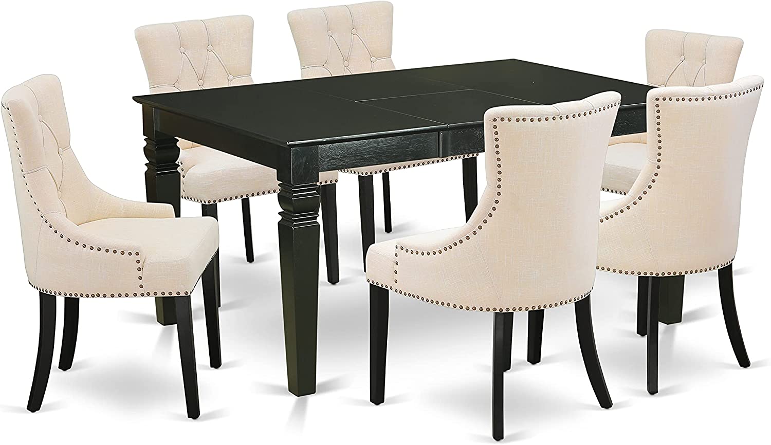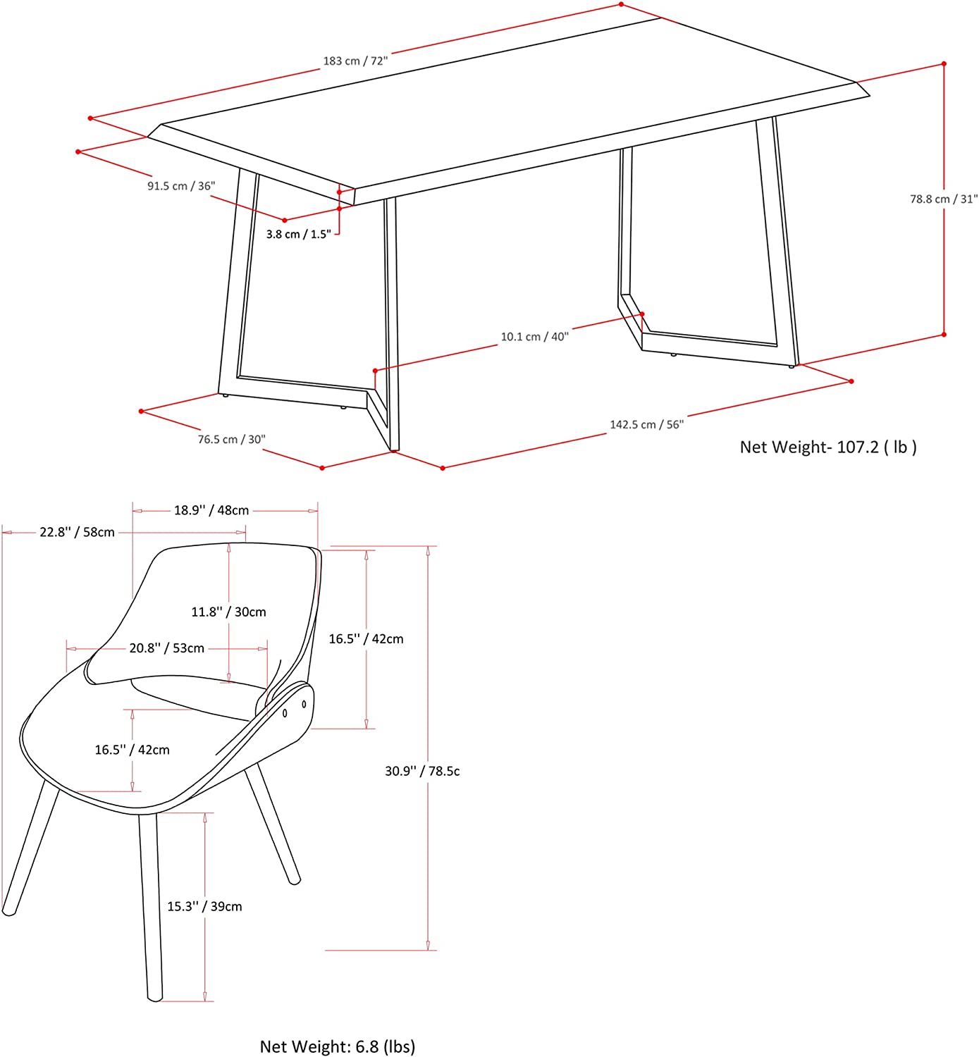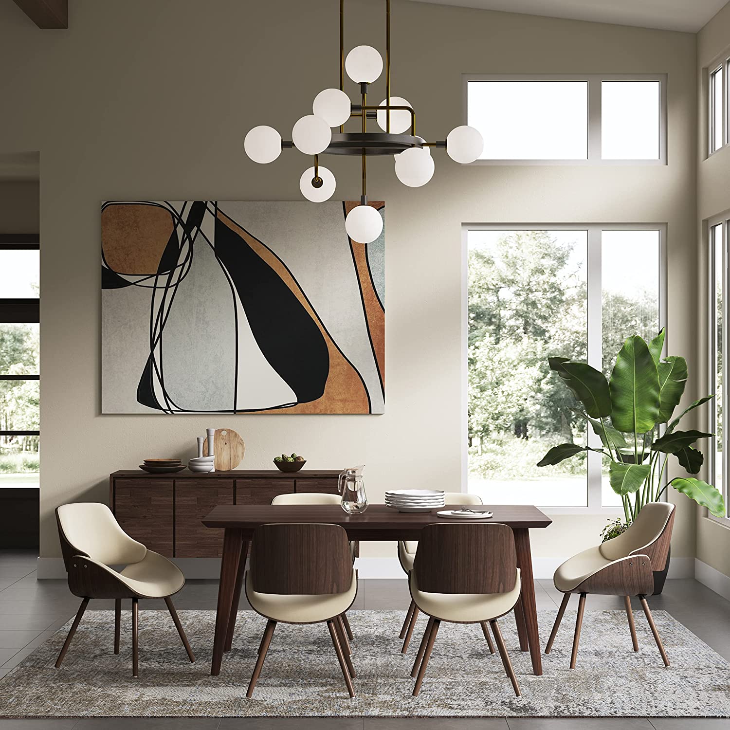 SIMPLIHOME Malden Mid Century Modern V 7 Pc Dining Set with 6 Upholstered Bentwood Dining Chairs in Natural Woven Polyester Fabric and 66 inch Wide Table SOLID MANGO WOOD Full Assembly Required
