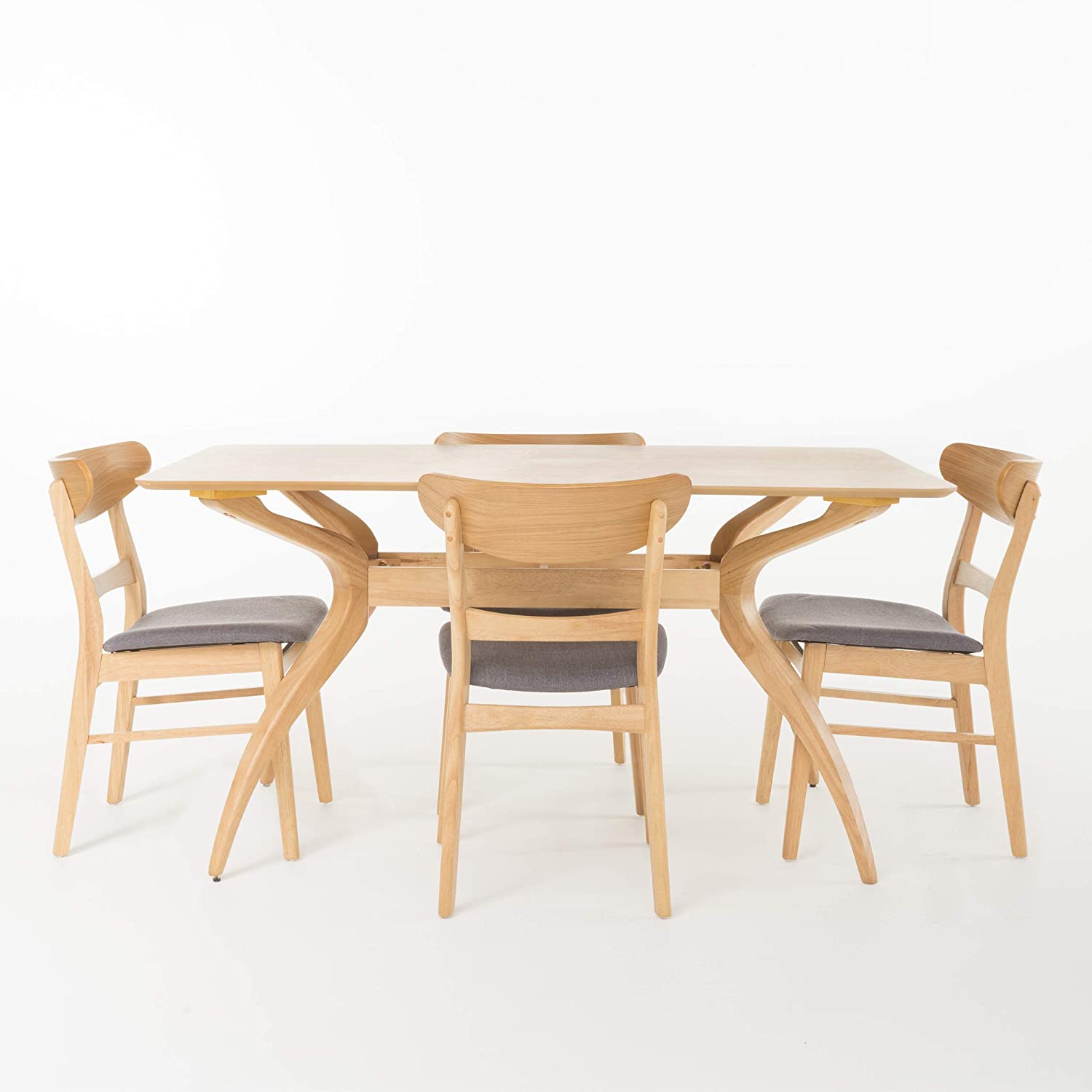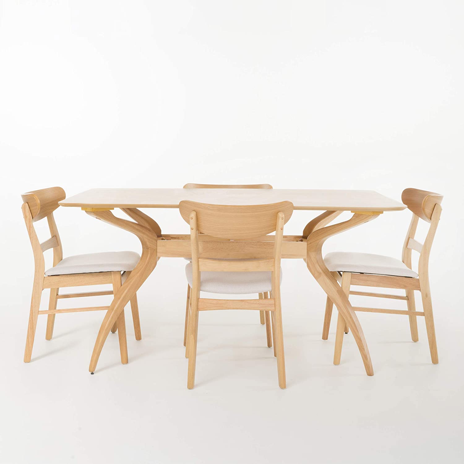 Christopher Knight Home Idalia Curved Leg Rectangular Dining Set, 5-Pcs Set, Natural Walnut / Mint