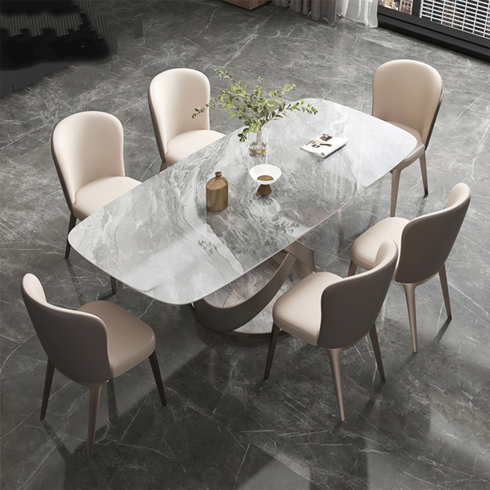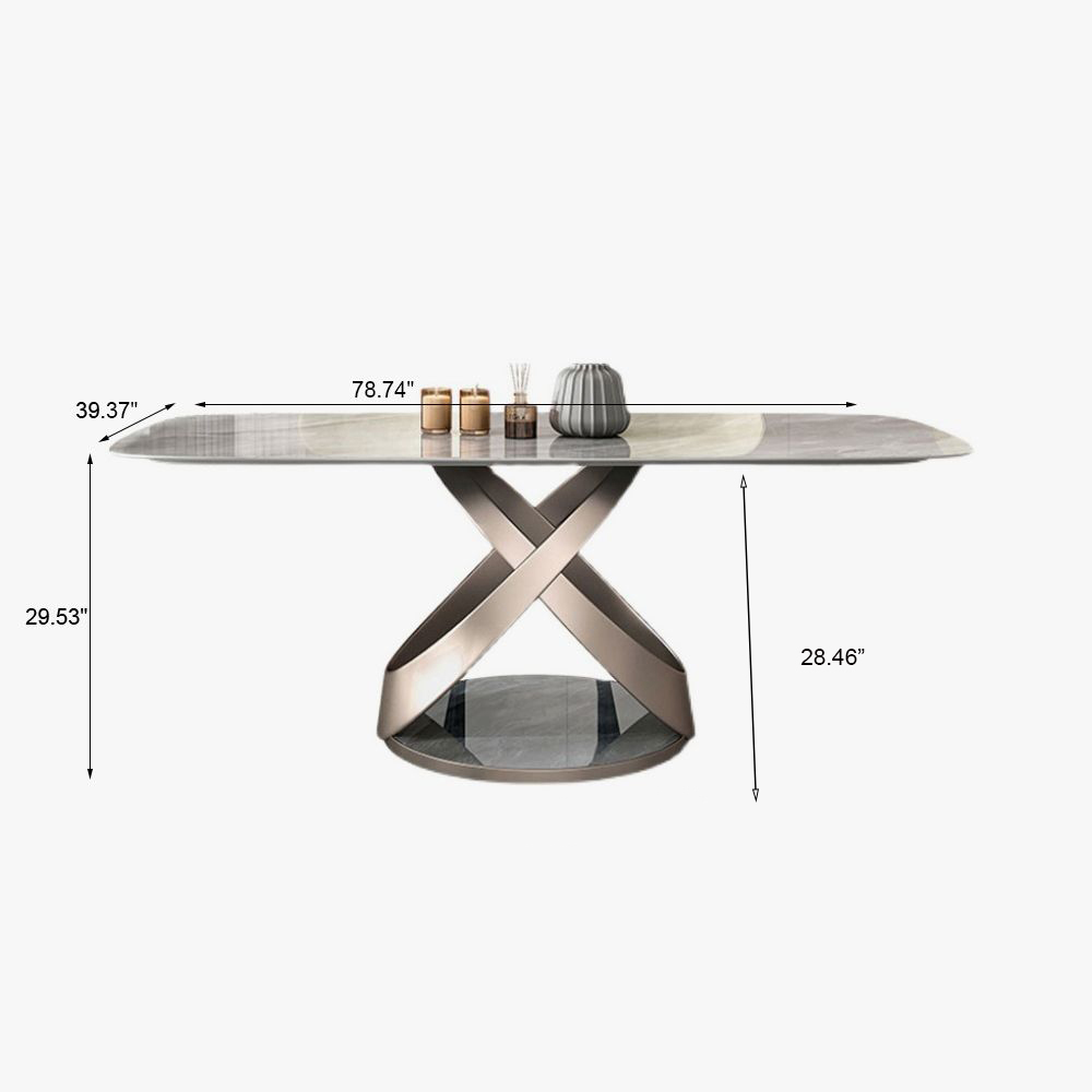 79"Modern Rectangular Dining Table for 6, with Gray Sintered Stone Tabletop, X-shaped Stainless Steel Base