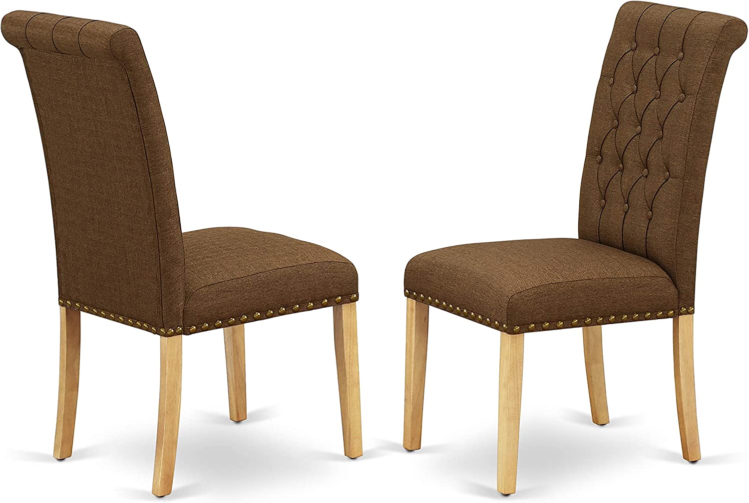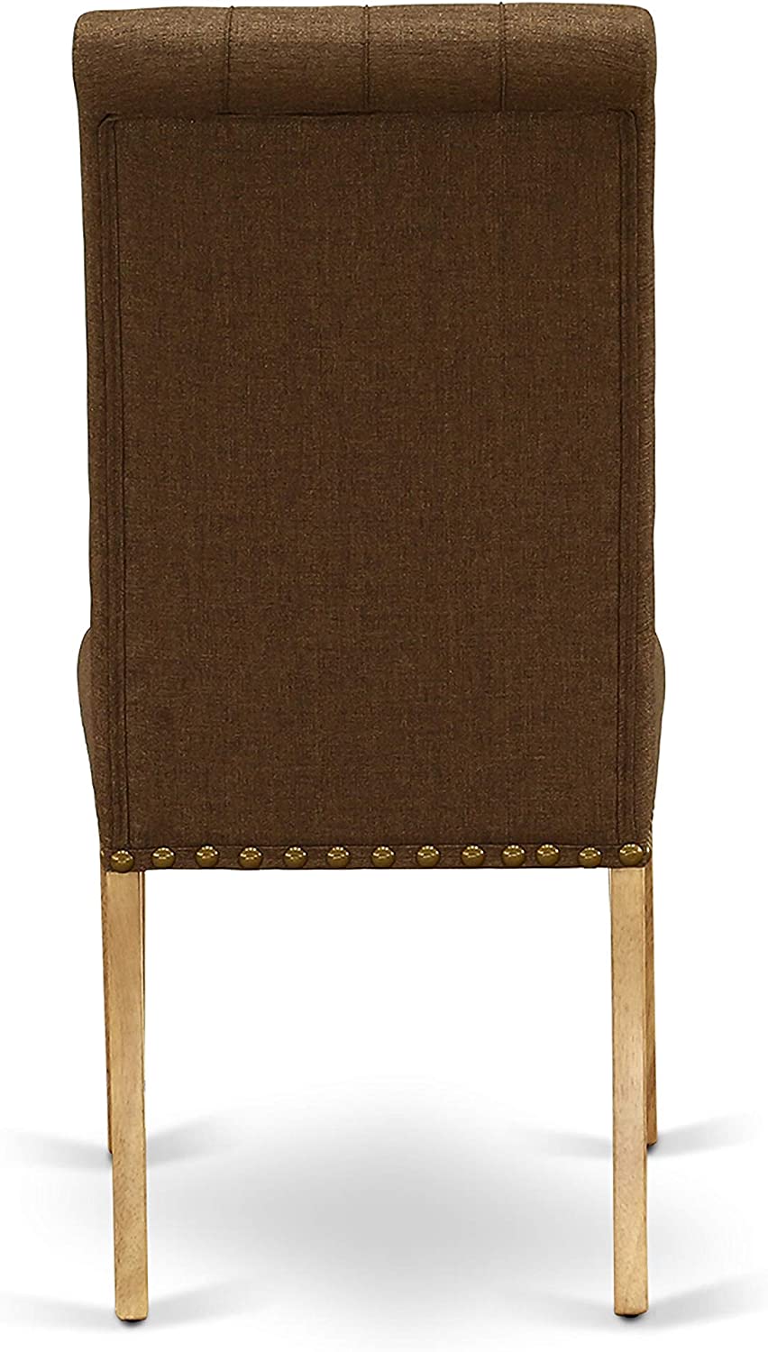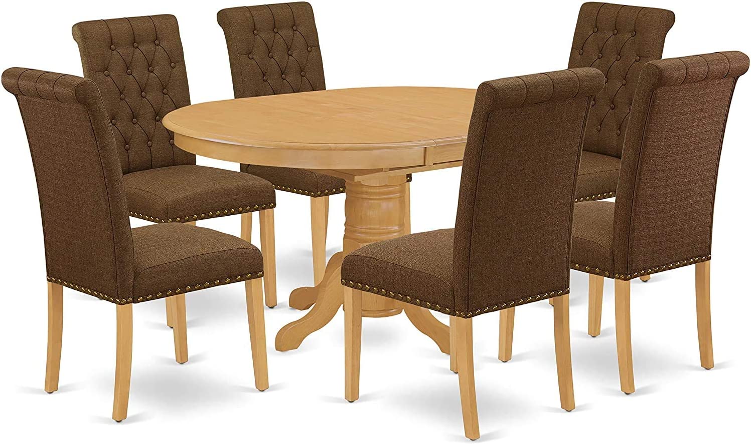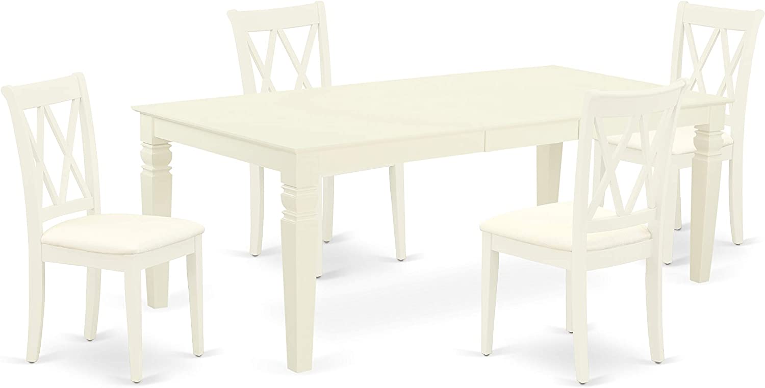 East West Furniture 5Pc Dining Set Includes an Oval Dinette Table with Butterfly Leaf and Four Parson Chairs with Light Beige Fabric, Linen White Finish