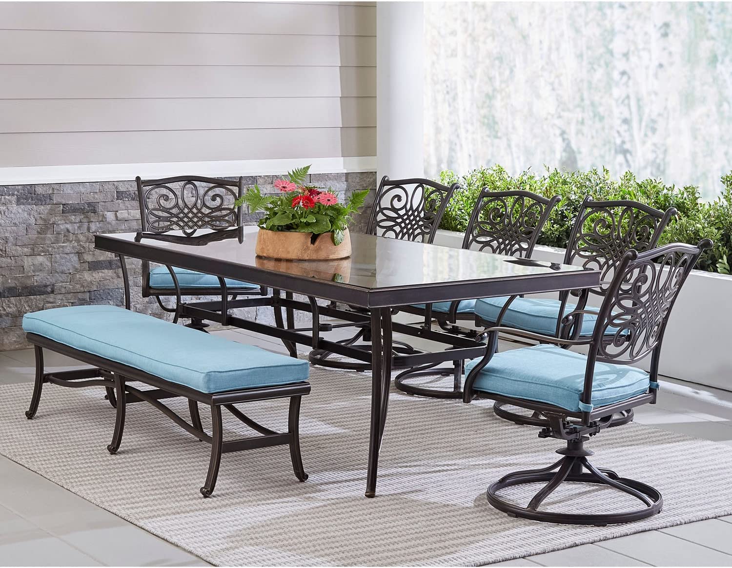 CAMBRIDGE SEAS9PCSWSQ8-BLU Seasons 9-Piece Square Dining Set Outdoor Furniture, Blue