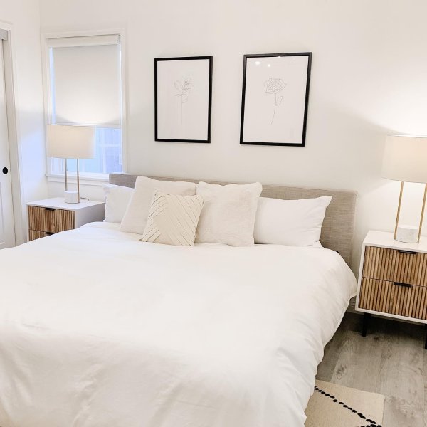【Furniture】Modern Mid-Century Upholstered Night Stand with 2 Drawers for Bedroom Wood Bedside End Table