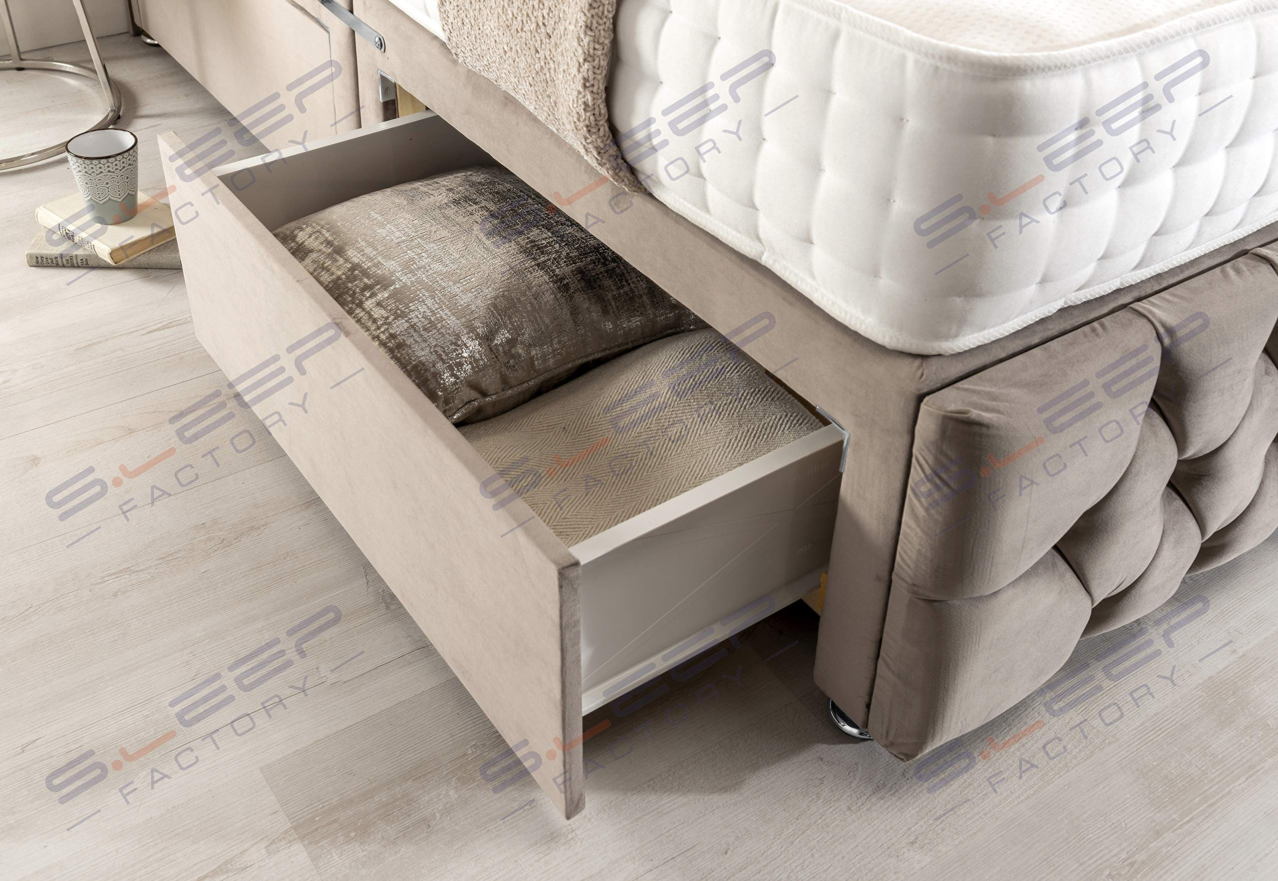 【Furniture】Pebble Plush Velvet Chesterfield 2 Drawer Divan Bed Set, Mattress & Headboard