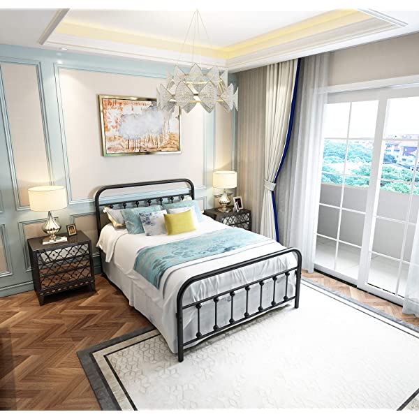 Black Metal Bed Frame Full Size with Headboard and Footboard Single Platform Mattress Base,Metal Tube and Iron-Art Bed(Full,Black) Full Black
