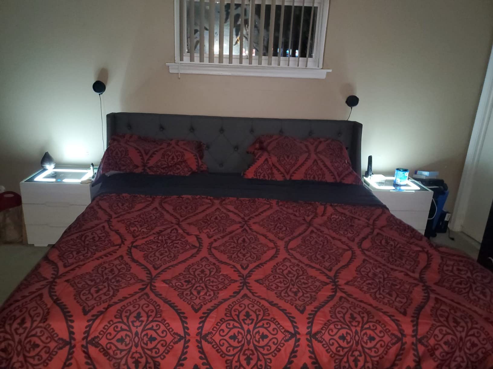 【Furniture】Nightstands Wireless Charging Station and LED Lights, Modern End Side Table with 3 Drawer