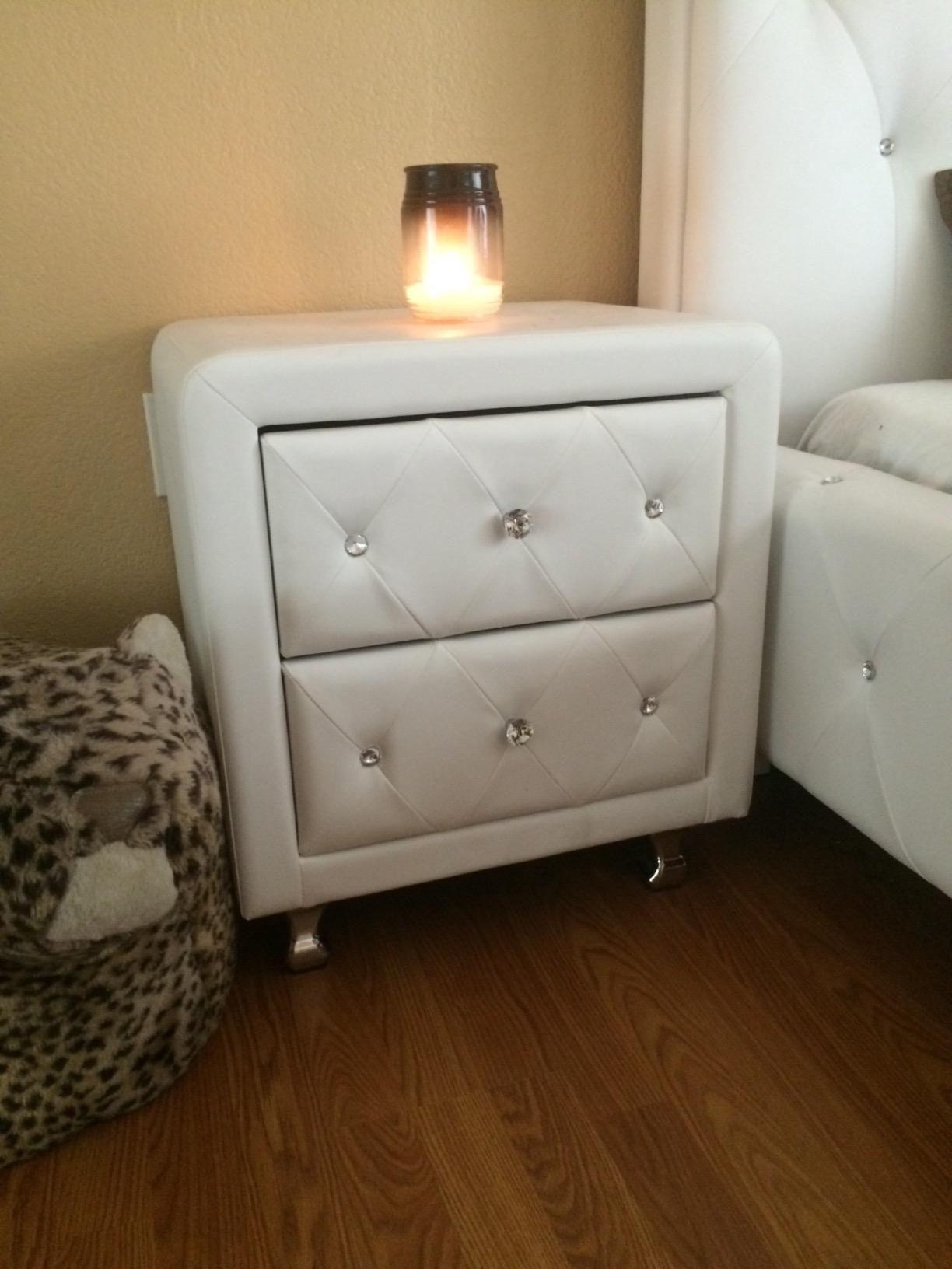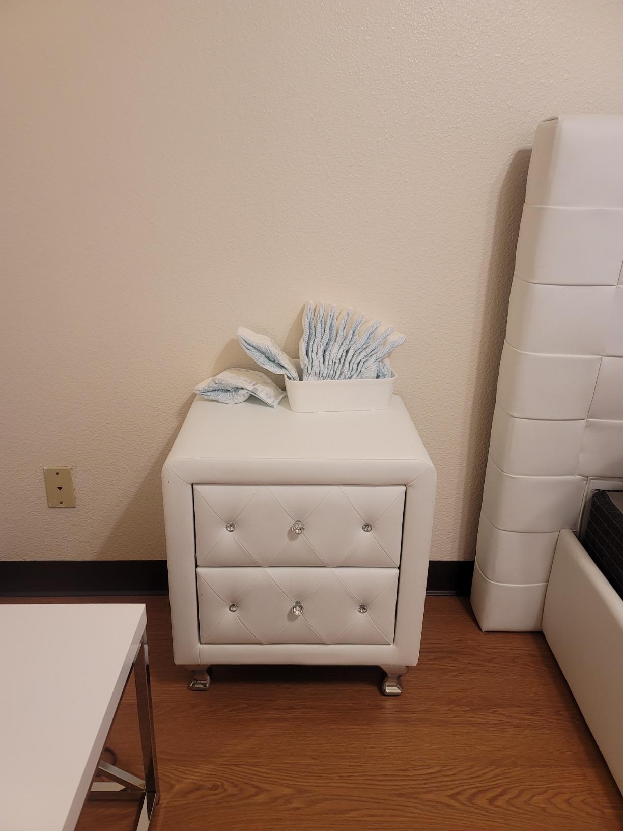 【Furniture】Modern Mid-Century Upholstered Night Stand with 2 Drawers for Bedroom Wood Bedside End Table