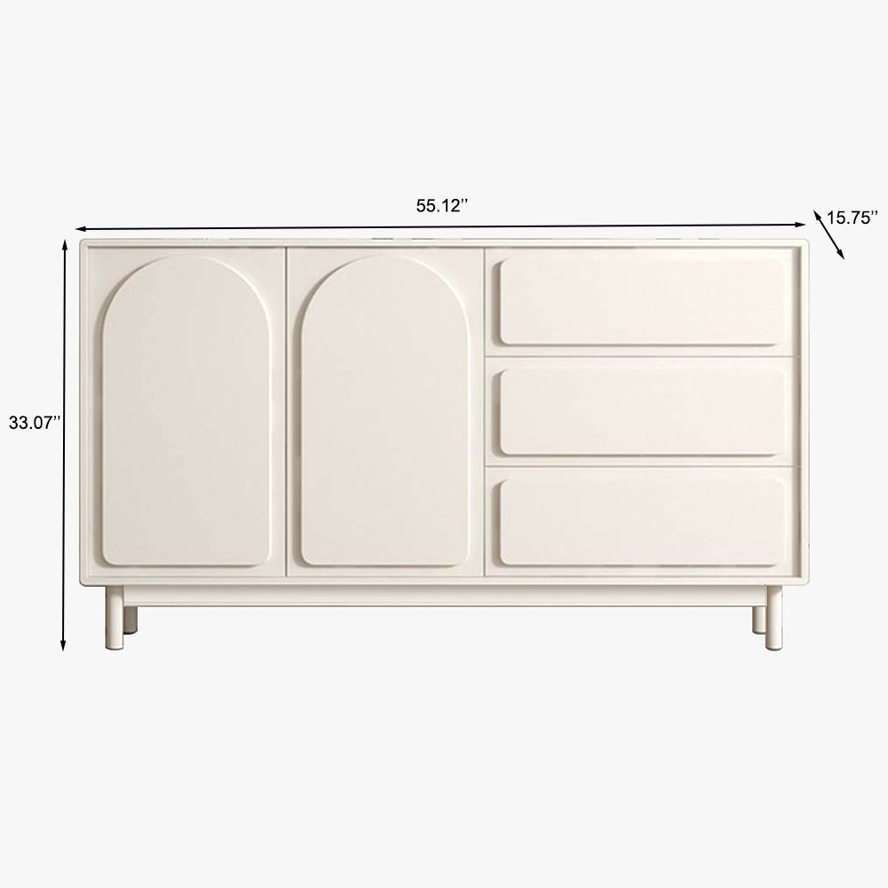 55.12" Modern Sideboard Buffet with Double Doors 3 Drawers, MDF Frame Solid Wood Legs, Assemble Needed, Cream White