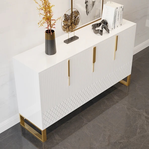 Medally 59" White Wood Sideboard Buffet Cabinet with Storage 3 Doors Gold Base