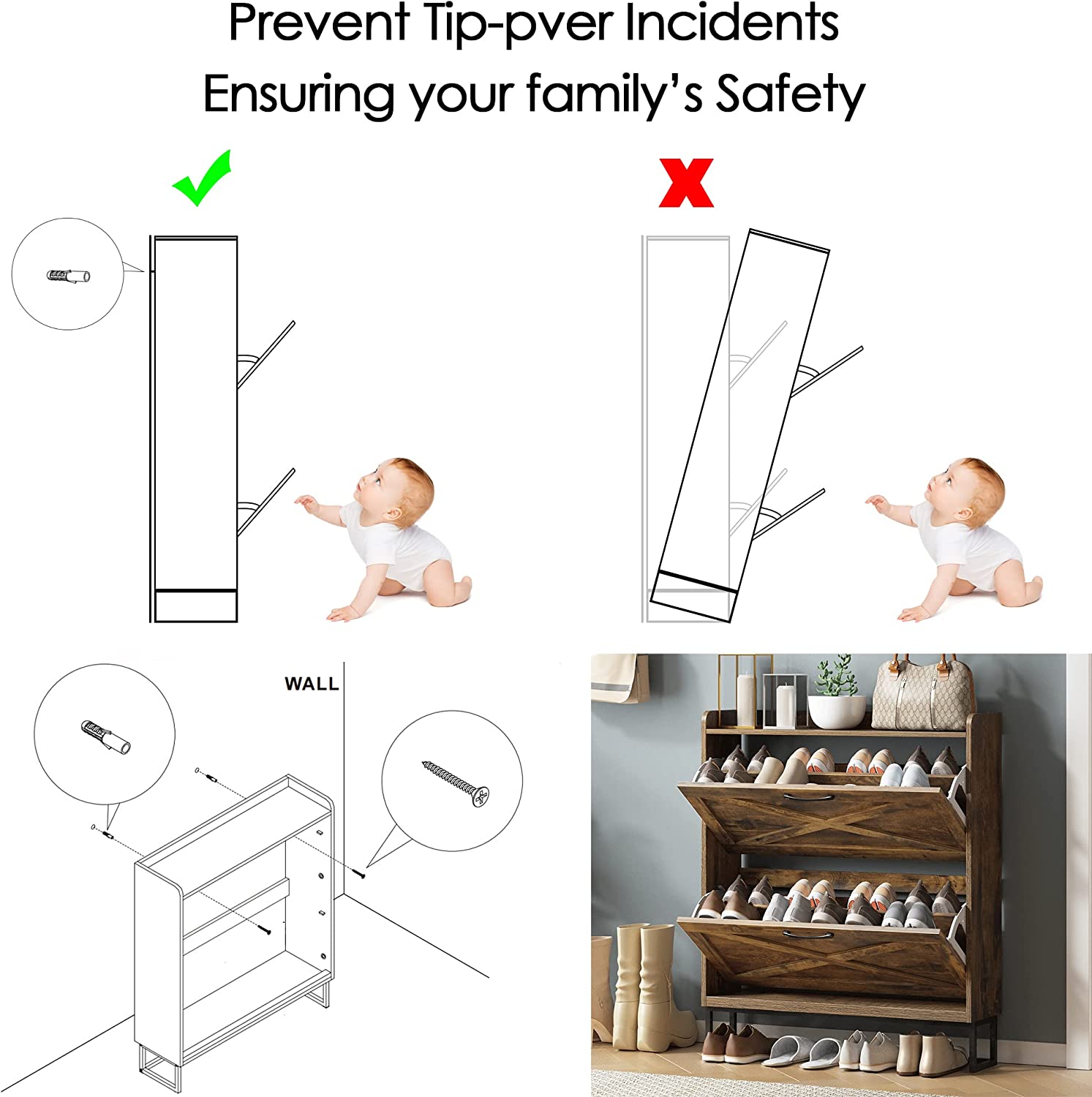 Maupvit Shoe Cabinet with 2 Flip Drawers, Freestanding Shoe Cabinet Organizer with Metal Legs, Shoes Storage Cabinet for Entryway, Narrow Shoe Rack Cabinet, Rustic Brown