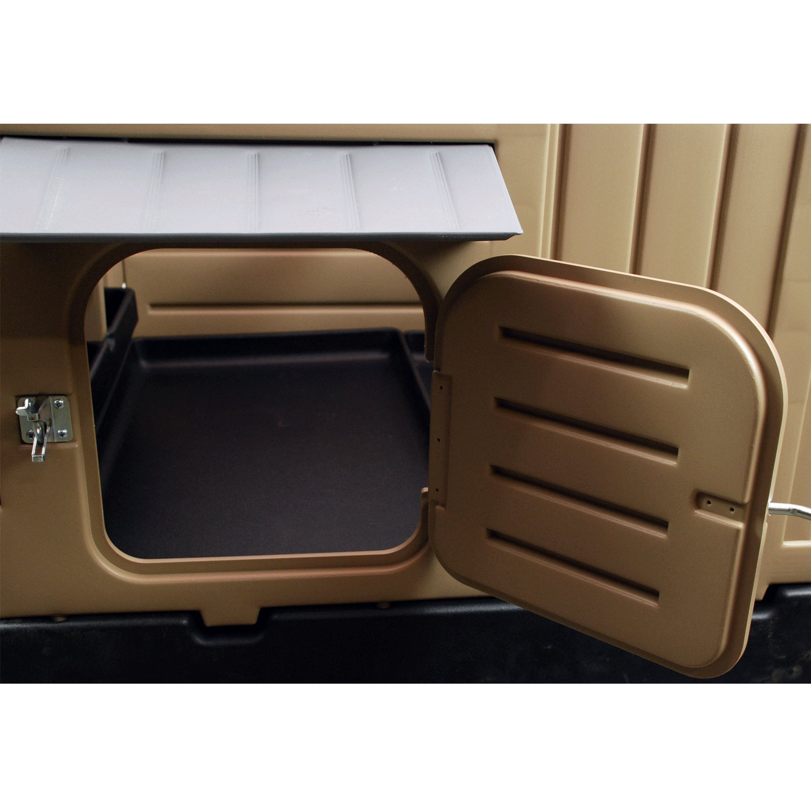 【Pet】Wooden Outdoor Dog House, Cabin-Style Pet House with Feeding Bowls, Asphalt Roof