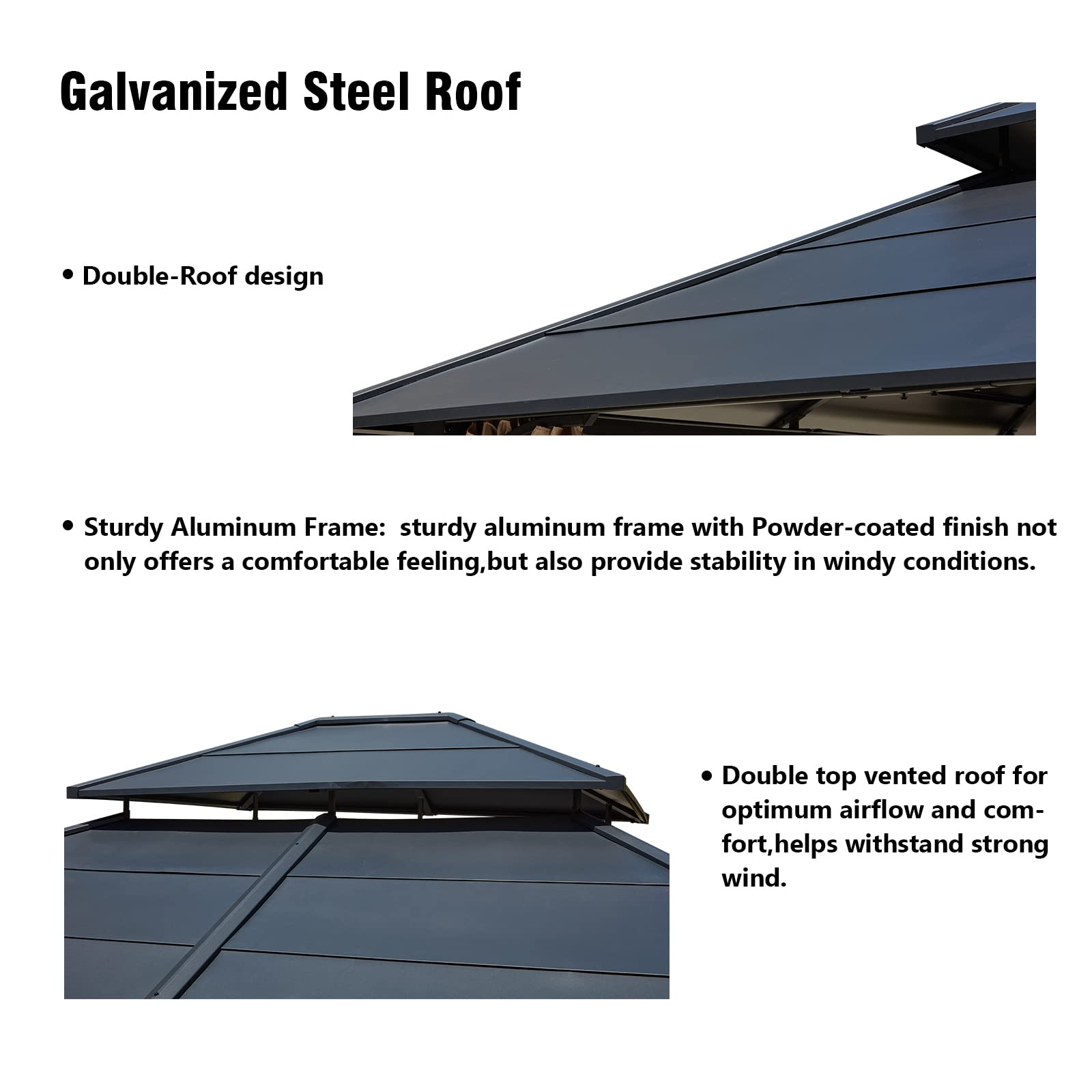【Gazebo】Deluxe Steel Hardtop Patio Gazebo Garden Sun Shelter Aluminum Frame Heavy Duty Outdoor Pavilion