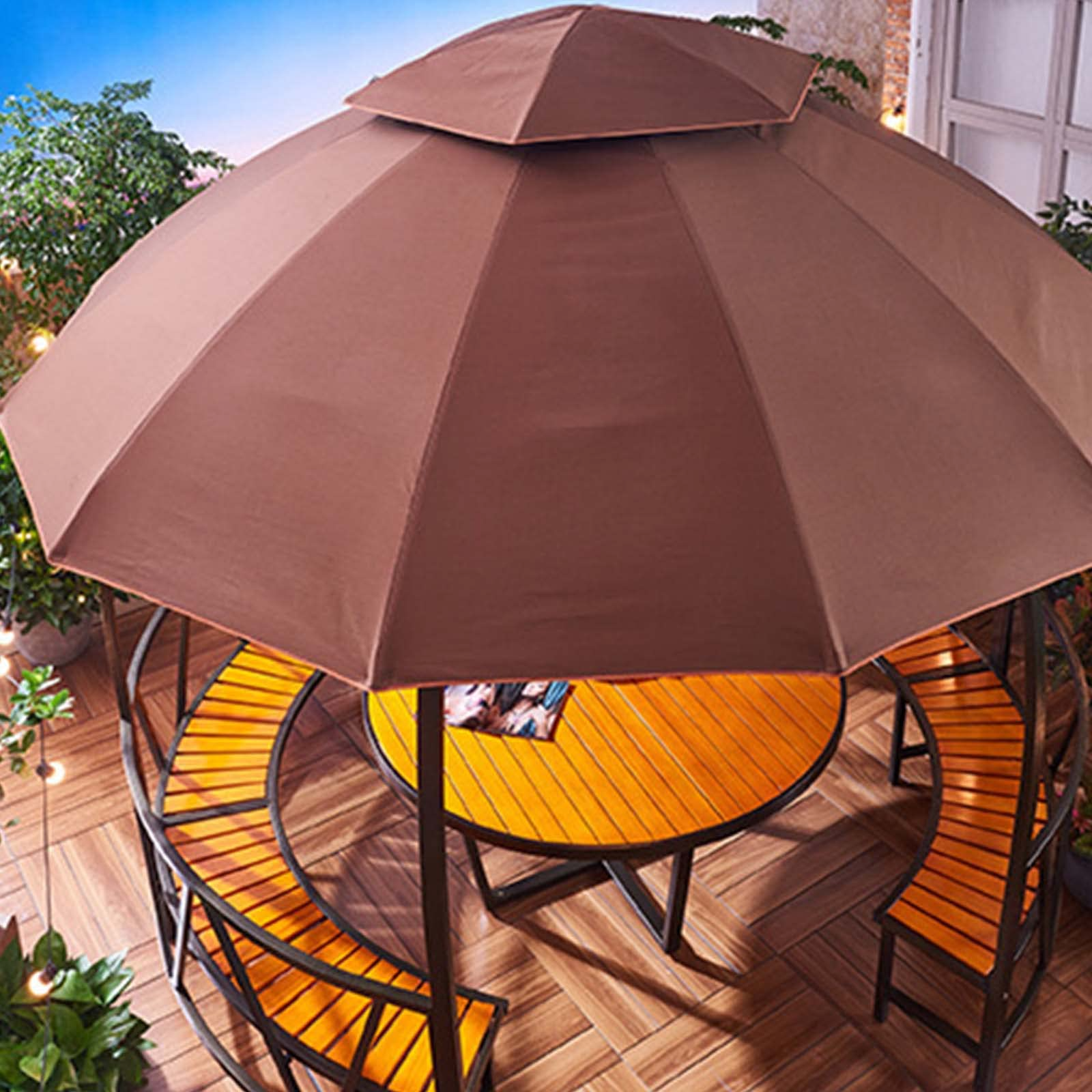 【Home&Garden】【BS】9.5x11 Steel Arched Pergola with 2-Tone Adjustable Shade, Tan & Brown