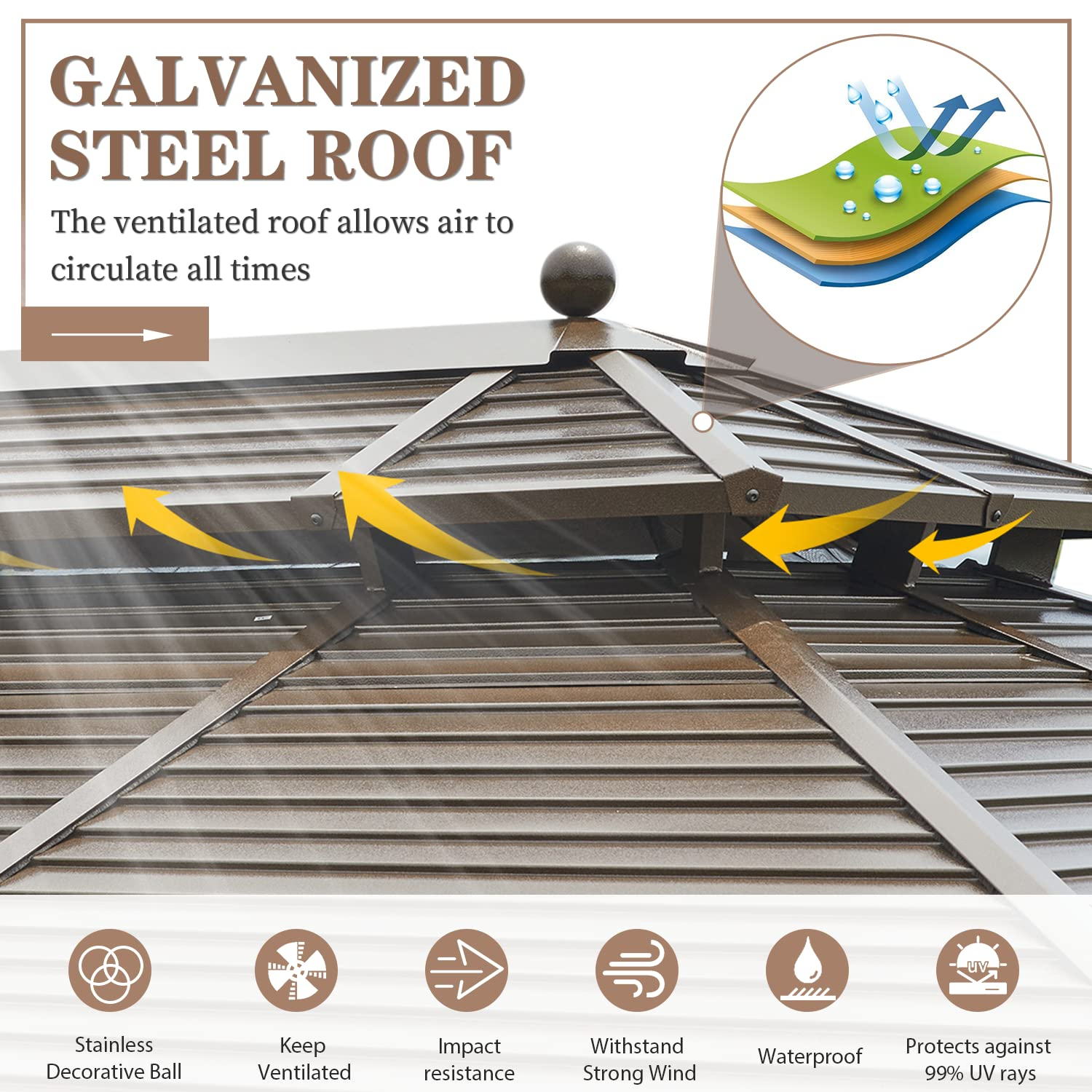 【Gazebo】Hardtop Gazebo Galvanized Steel Outdoor Gazebo Canopy for Garden, Patio, Lawns, Parties