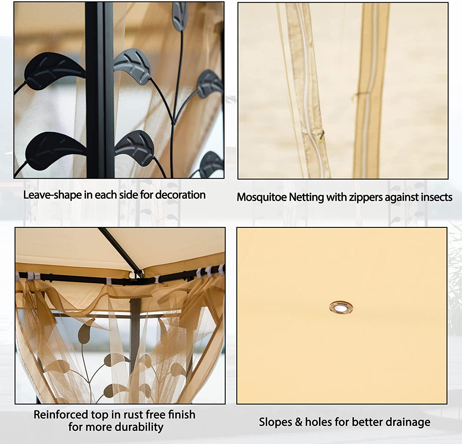 【Gazebo】10x10 Ft Patio BBQ Gazebo w/Side Wall & Mosquito Netting for Outdoor Party Activities, Beige