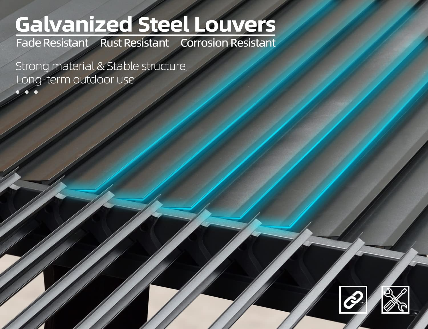 【Home&Garden】Outdoor Louvered Pergola 10'x13' Adjustable Metal Roof Hardtop Gazebo