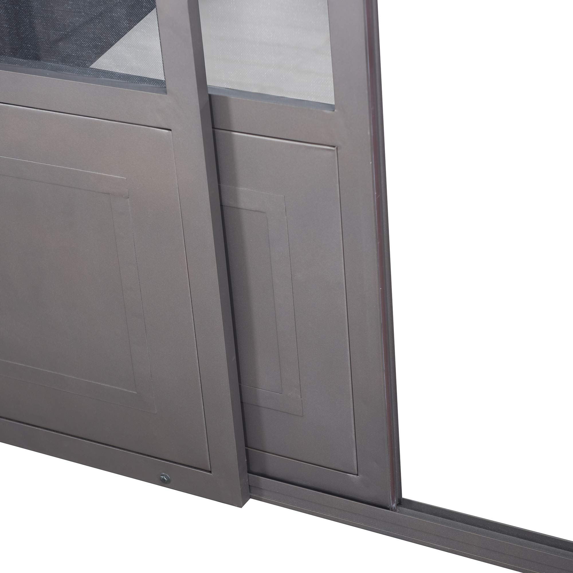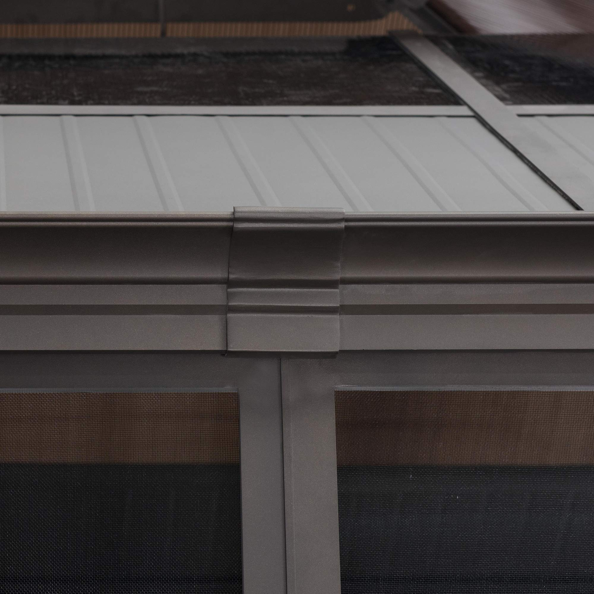 【Home&Garden】Outdoor Sunroom 12x14 ft. Steel Screenhouse with 2-Tier Hardtop Hot Tub Gazebo, Brown
