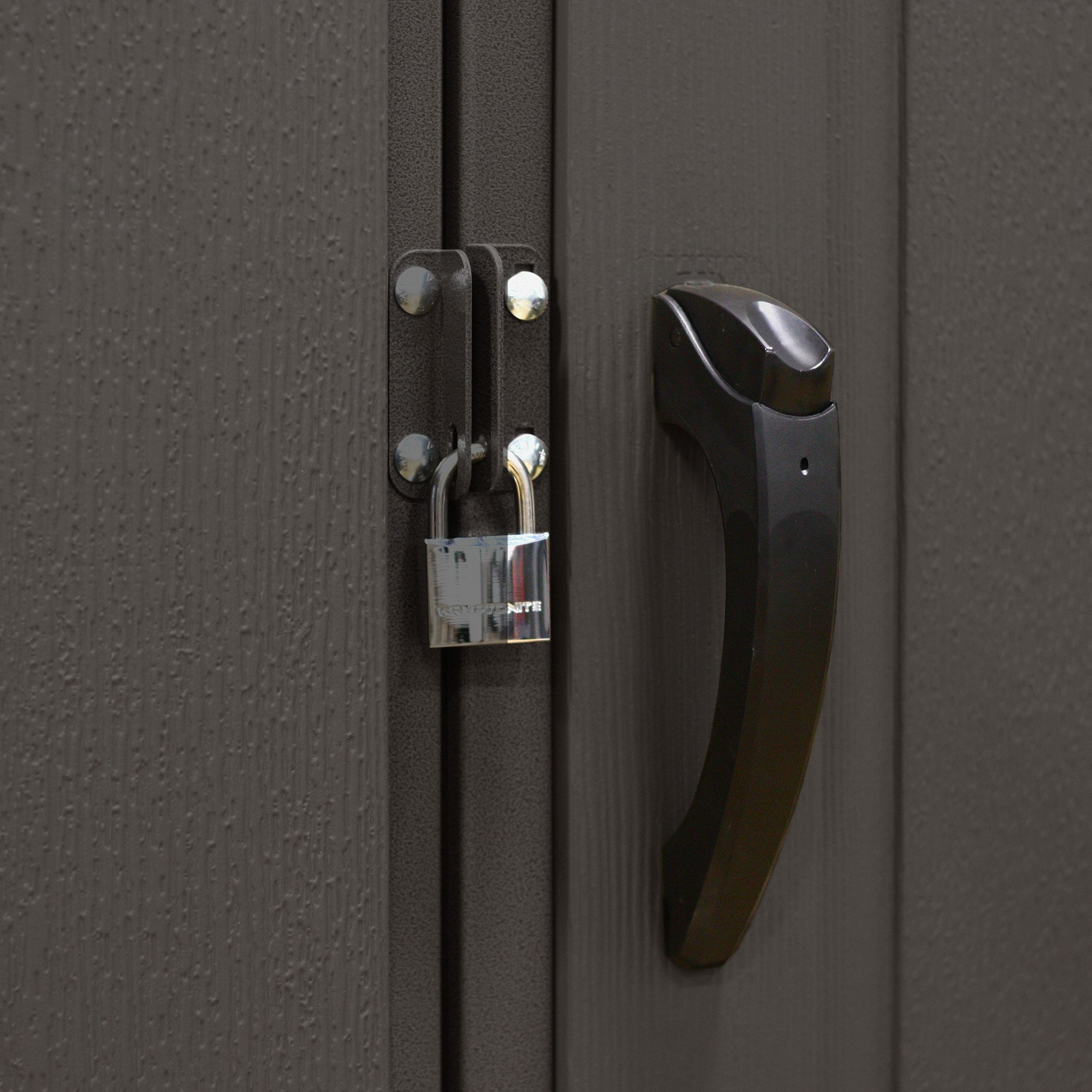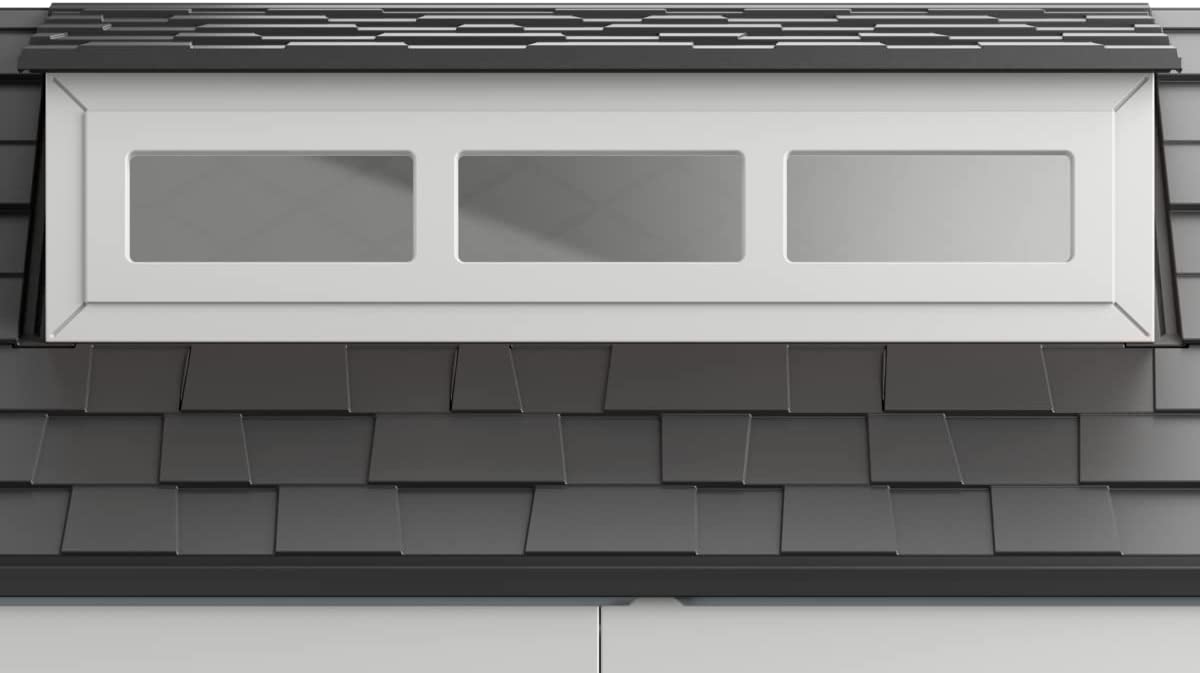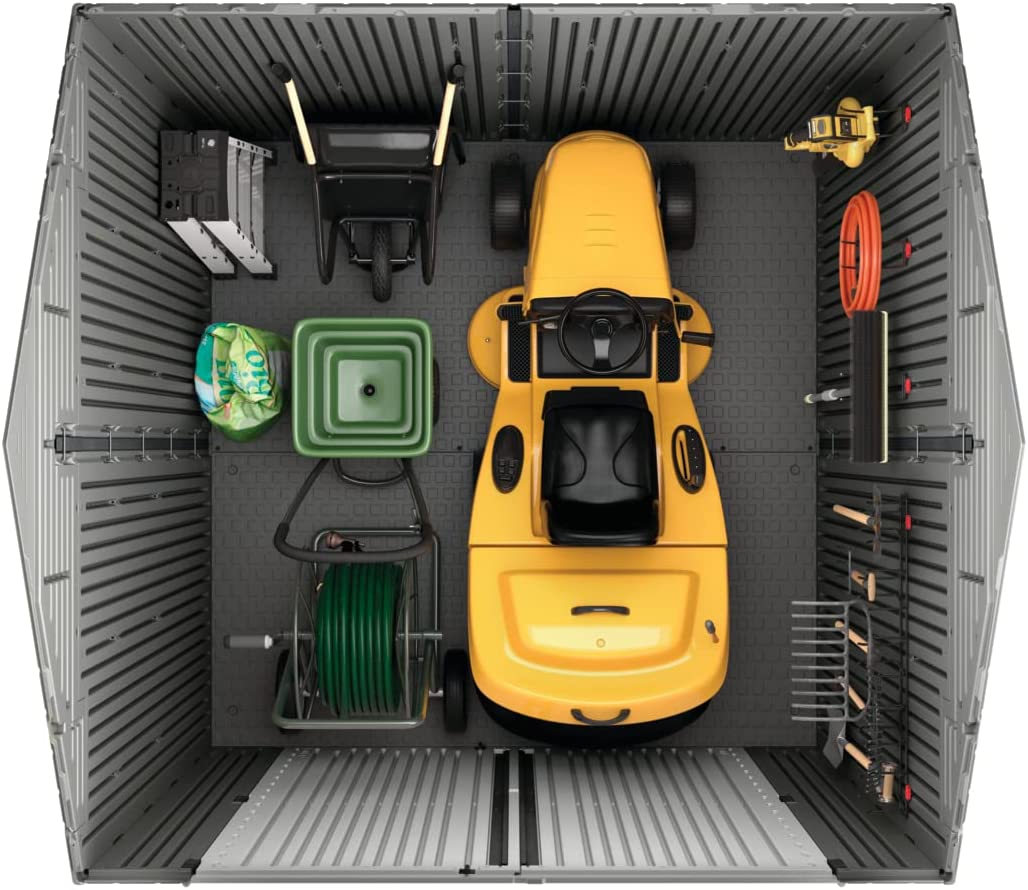 Rubbermaid Resin Weather Resistant Outdoor Storage Shed, 7 x 7 ft., Simple Gray/Onyx, for Garden/Backyard/Home/Pool